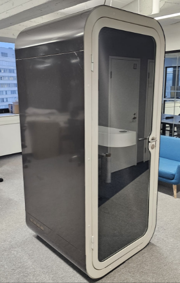 Käytetty, kuntotarkastettu ja huollettu Framery O yhden hengen puhelinkoppi. Tässä puhelinkopissa on alan johtava äänieristys, sekä taatusti raikas sisäilma erinomaisen ilmanvaihdon ansiosta.