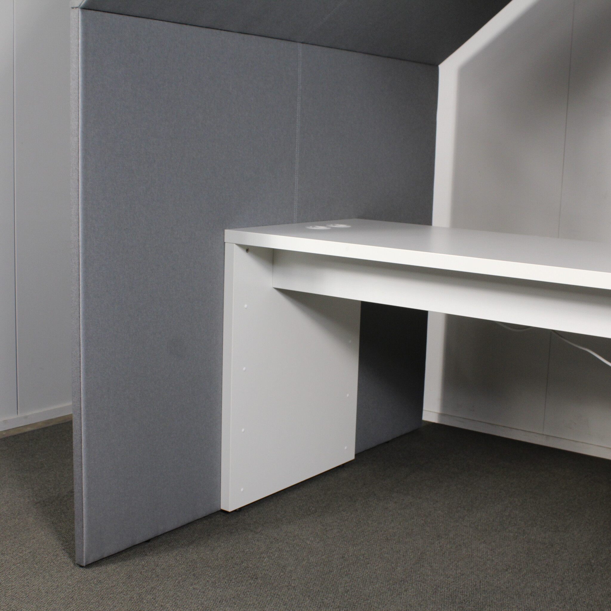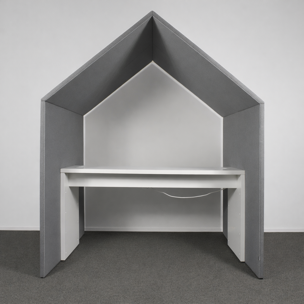 Käytetty Götessons Half a Hut on akustinen työpiste avotoimistoon. Parantaa keskittymistä, vaimentaa melua ja luo rauhallisen työtilan puheluille ja työskentelyyn.