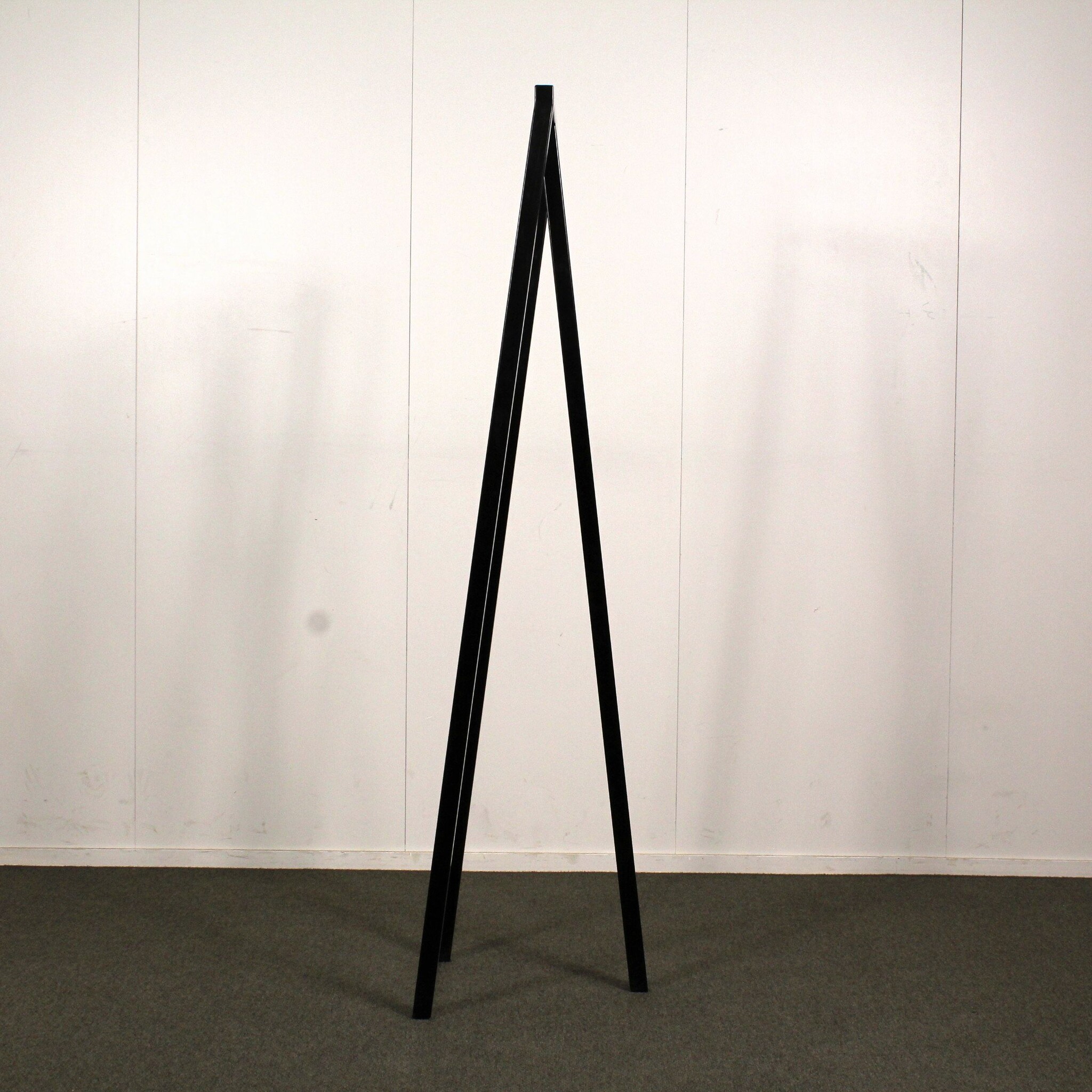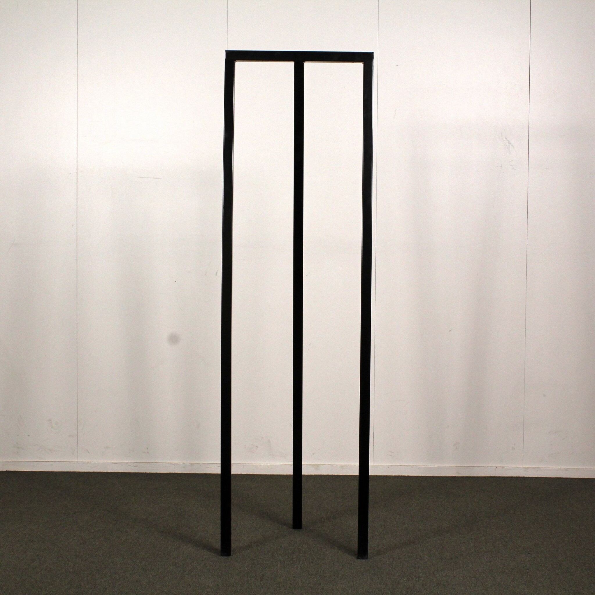 Pulverimaalattu musta metalli. Korkeus noin 150,5 cm, leveys noin 45 cm