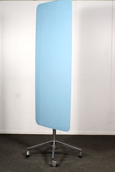 Mainiossa kunnossa oleva, laadukas Lintexin FLOW Mobile kirjoitustaulu. Tässä kirjoitutaulussa on lasitaulupinta pyöristetyillä kulmilla sekä kiillotettu alumiinijalusta pyörillä.