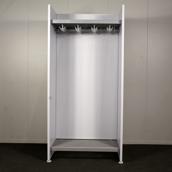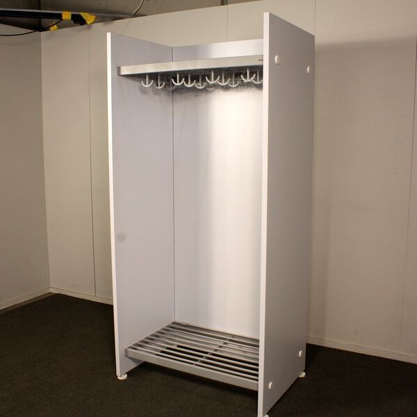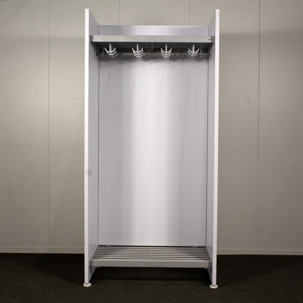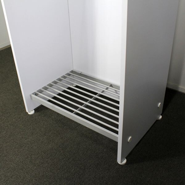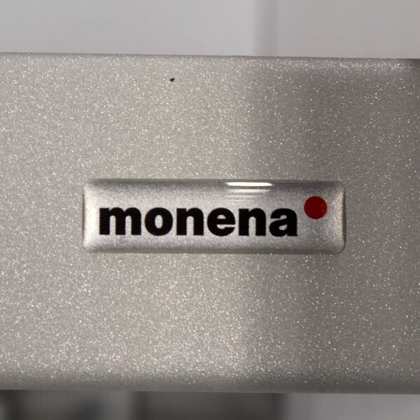 Siisti ja tukeva Monena Lobby järjestelmänaulakko. Metallirunko harmaa, päätyosat vaaleanharmaat.