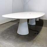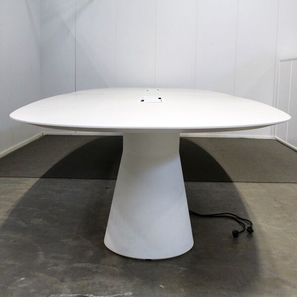 Käytetty Andreu World Reverse neuvottelupöytä, siistissä kunnossa. Tässä neuvottelupöydässä on tukevat pilarijalat sekä kaunis valkolakattu puukuvioitu kansi.