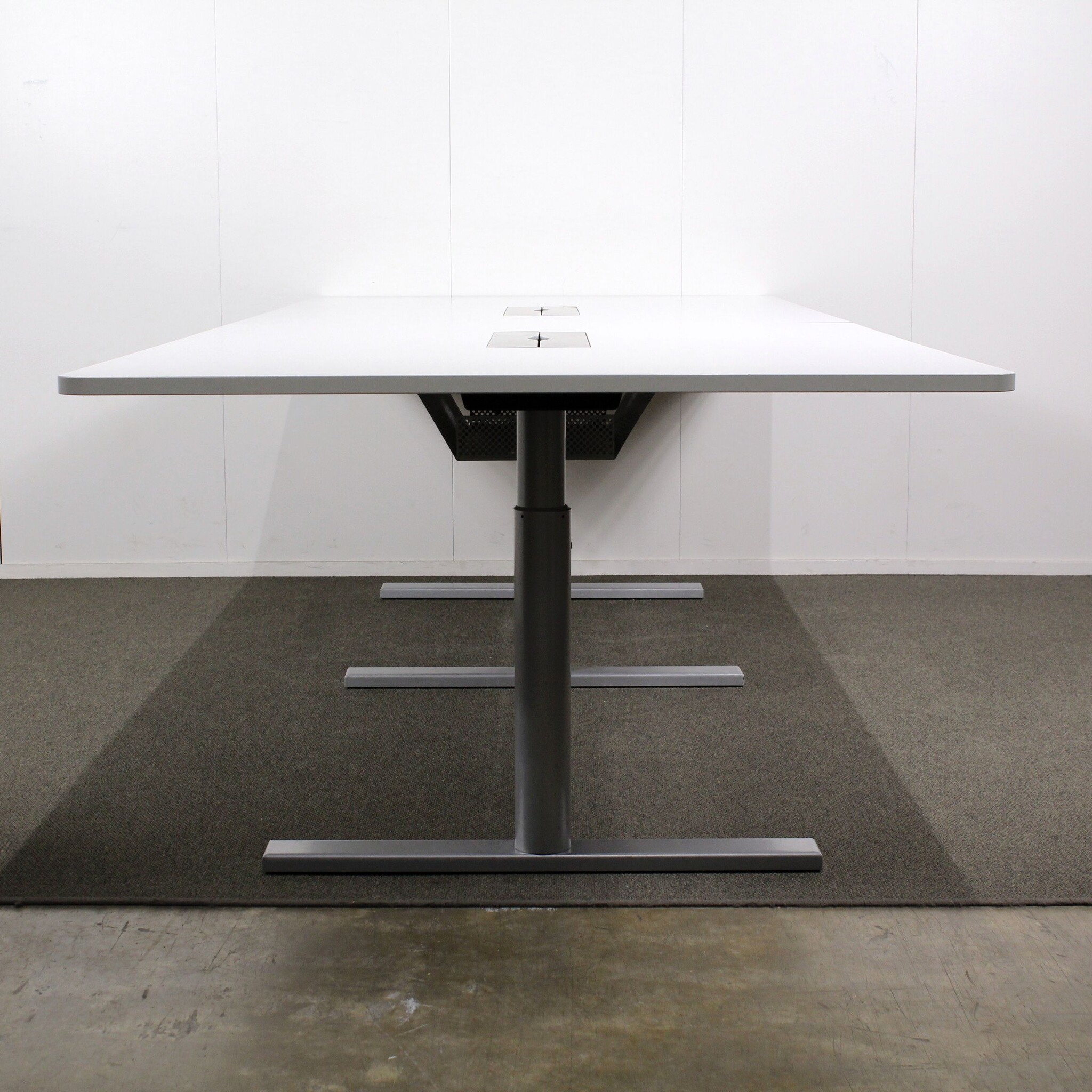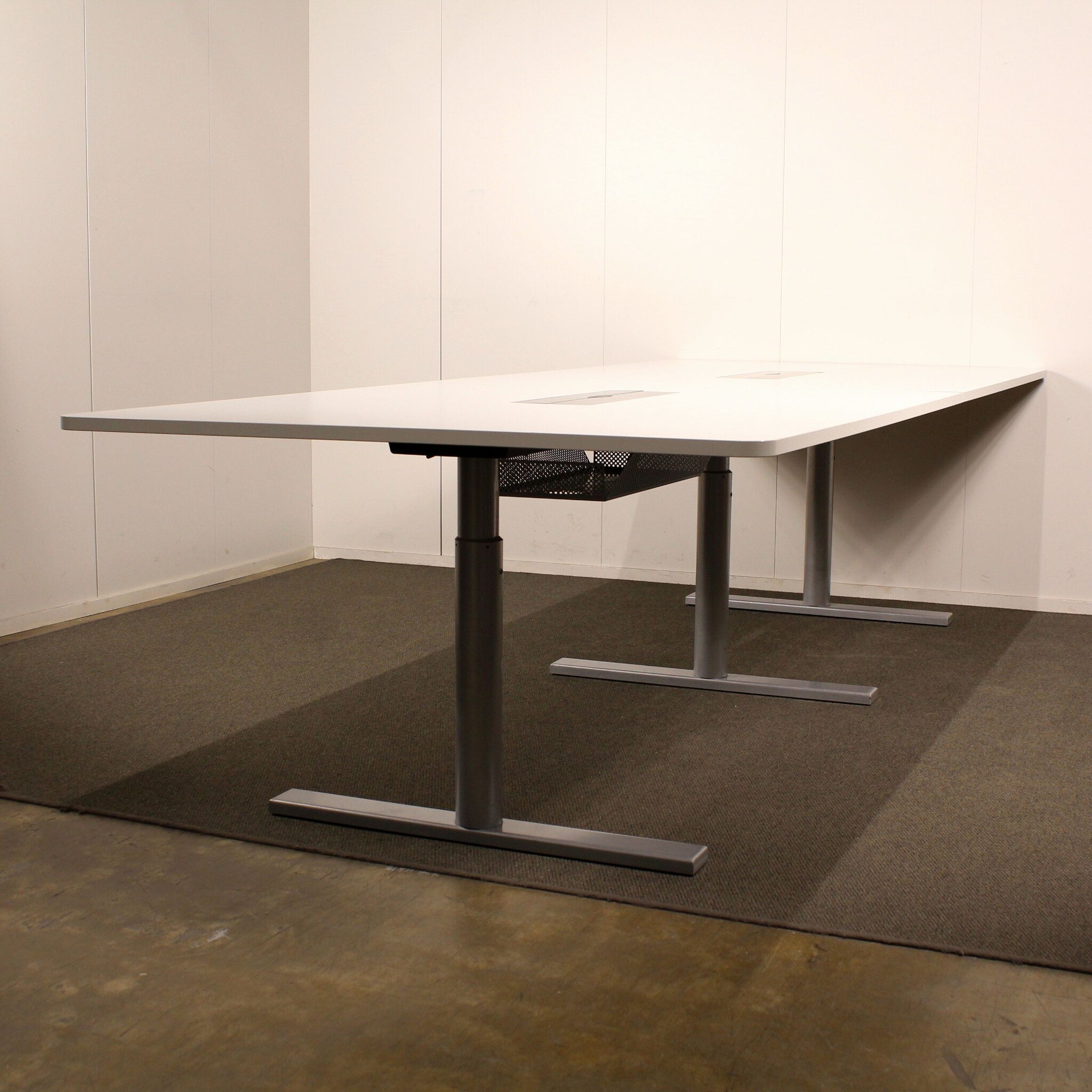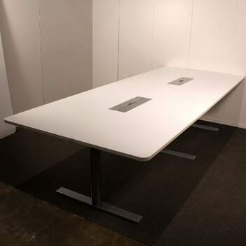 Laadukas, käytetty Duba neuvottelupöytä. Tässä tukevassa neuvottelupöydässä on lisävarusteena kätevät johtoluukut sekä -kourut