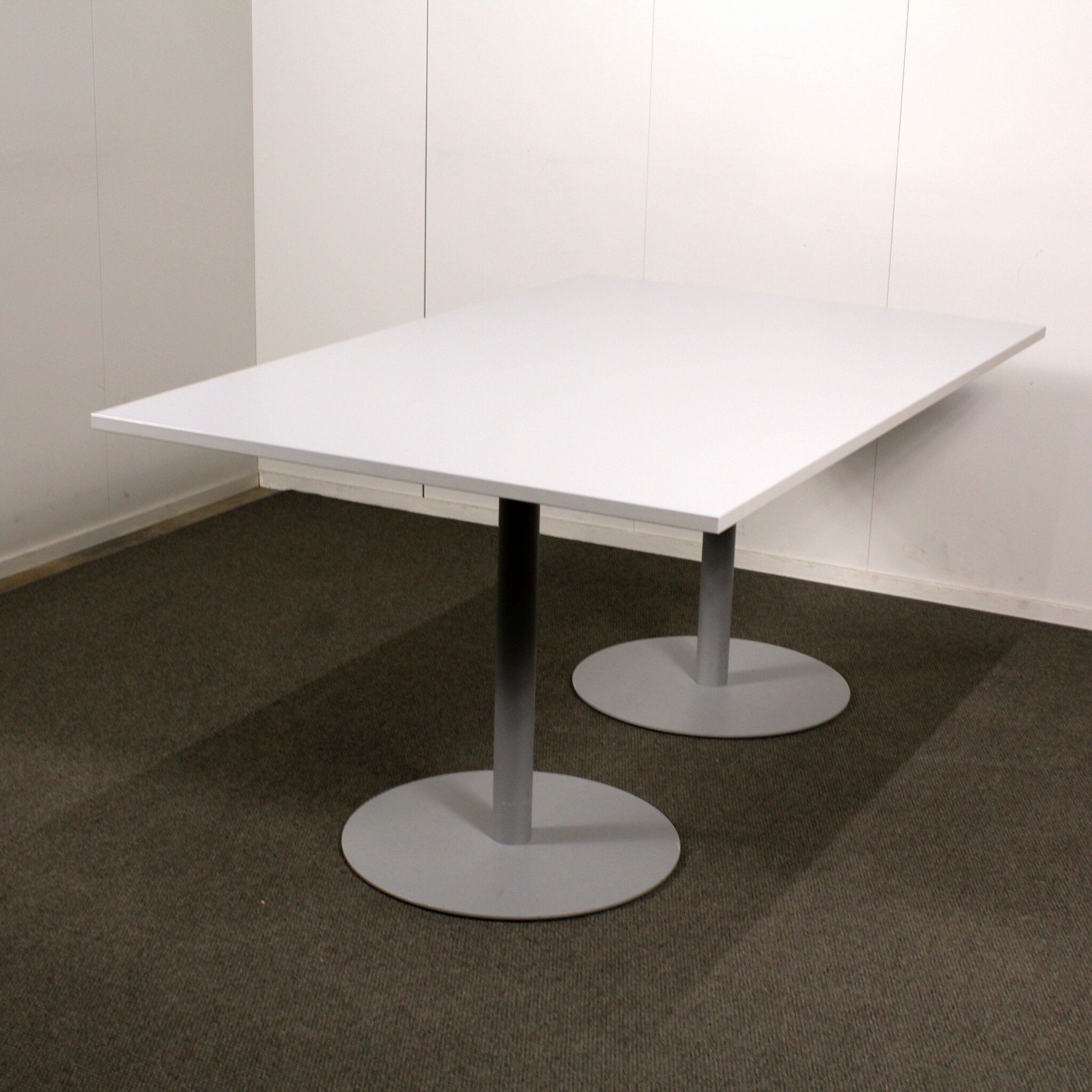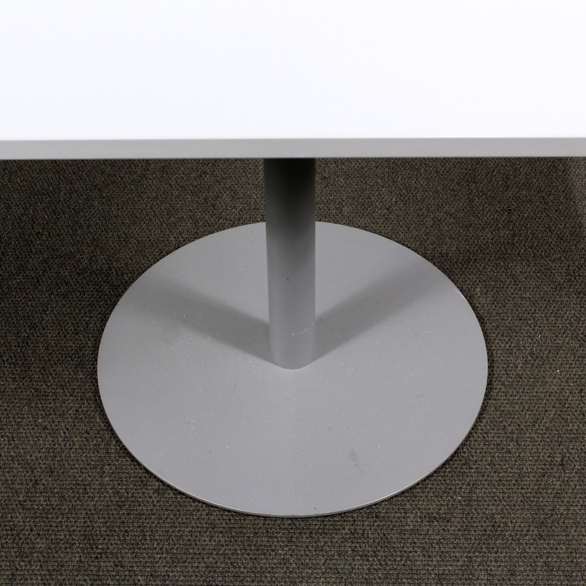 Käytetty Martela Spot neuvottelupöytä, hyvässä kunnossa. Tässä neuvottelupöydässä on tukeva laippajalusta sekä siisti vaalean harmaa laminaattikansi.