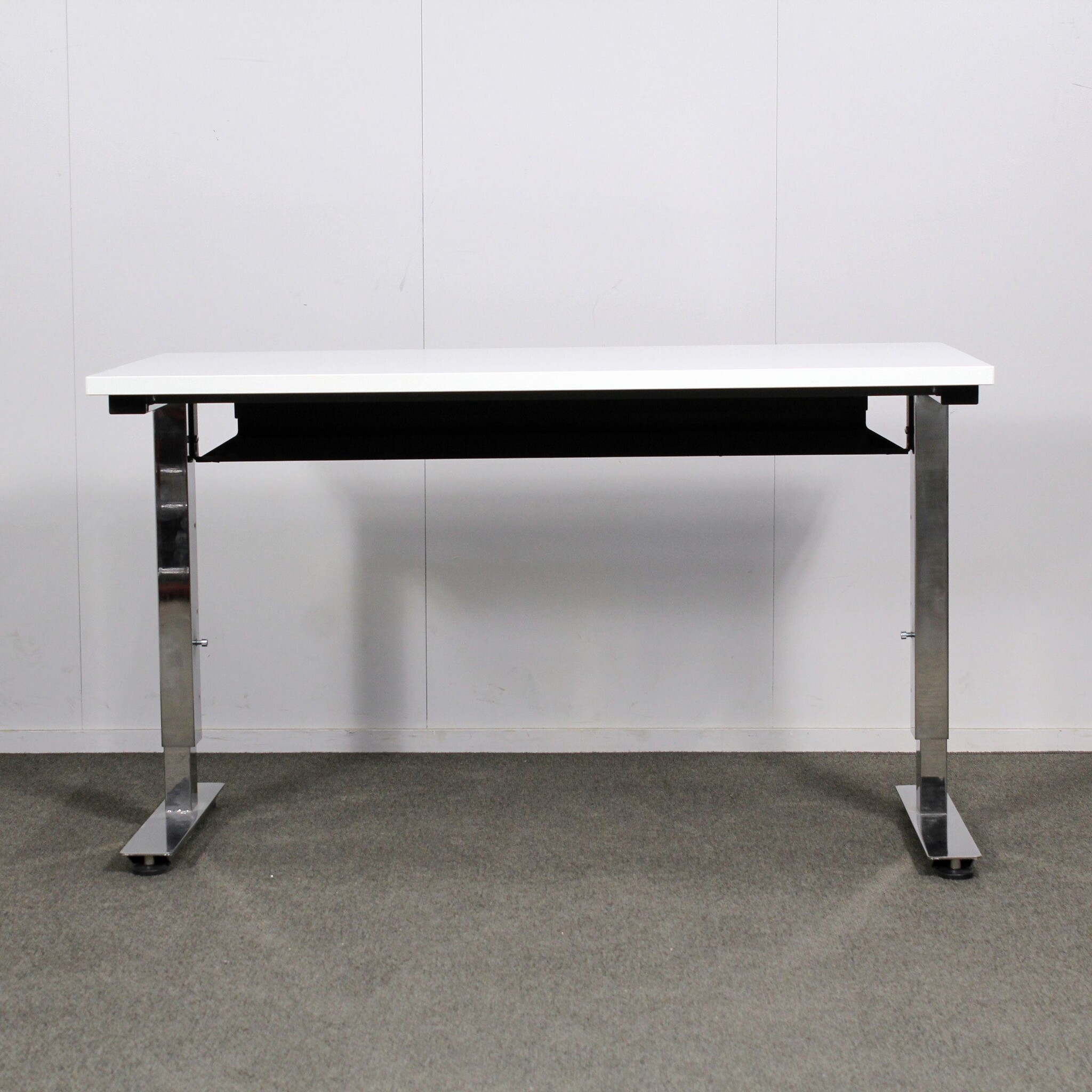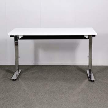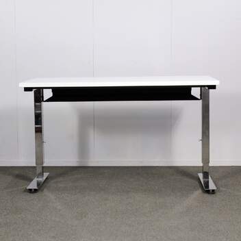 Käytetty EFG yleispöytä, hyvässä kunnossa. Tässä pöydässä on tukeva krominen T-jalusta ja valkoinen siisti kansi.
