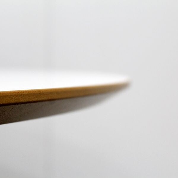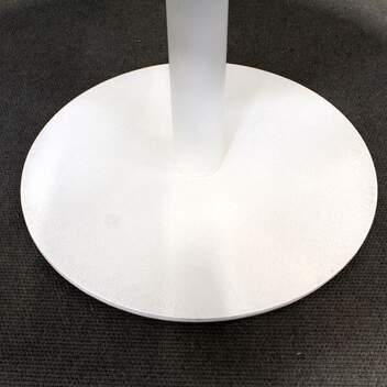Kannen halkaisija 118 cm, korkeus 73 cm. Jalustan ja kannen väri valkoinen. Kannessa reunaviiste.