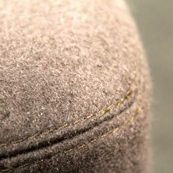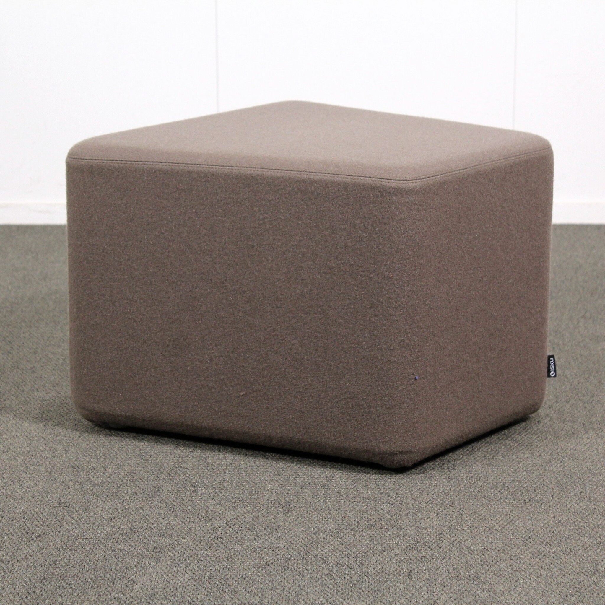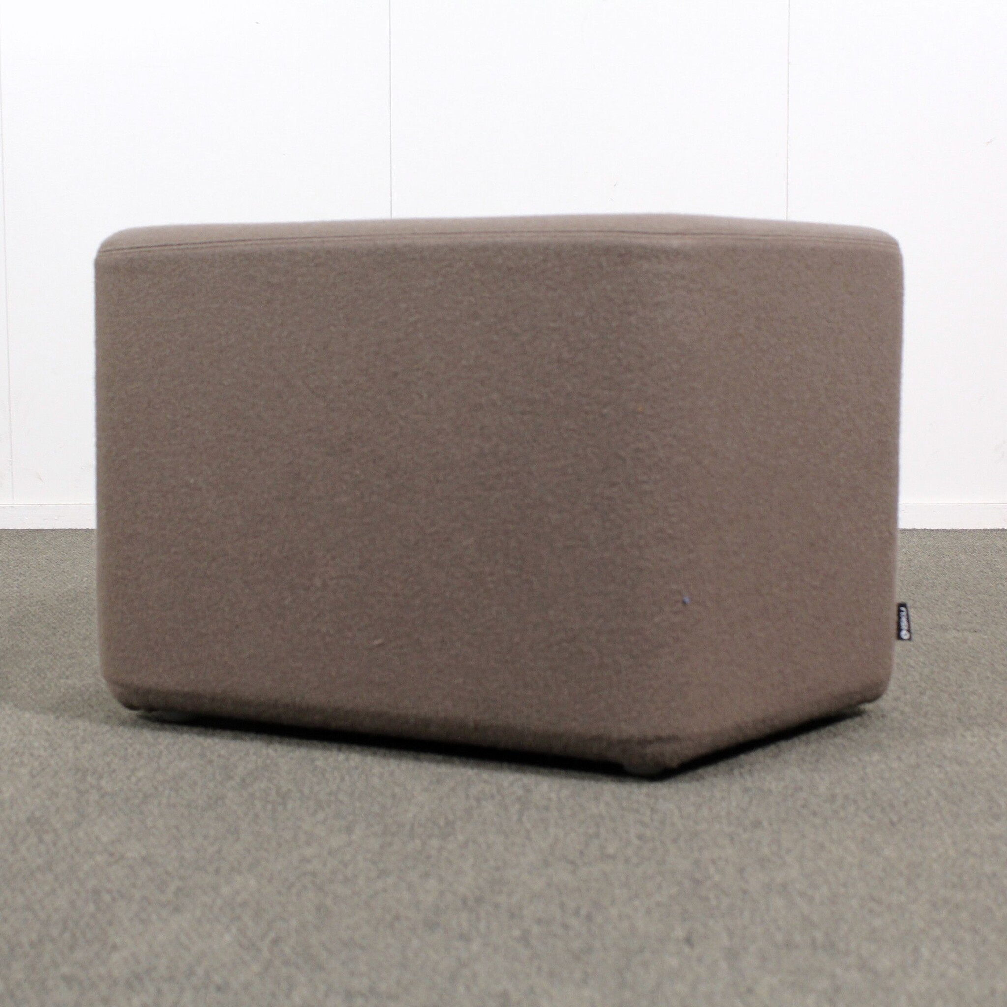 Koko noin 51 x 49 cm, korkeus 40 cm. Kangasverhoilu, ruskea.