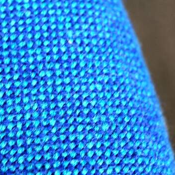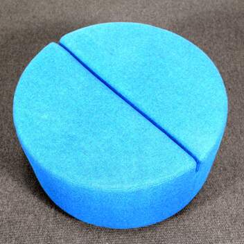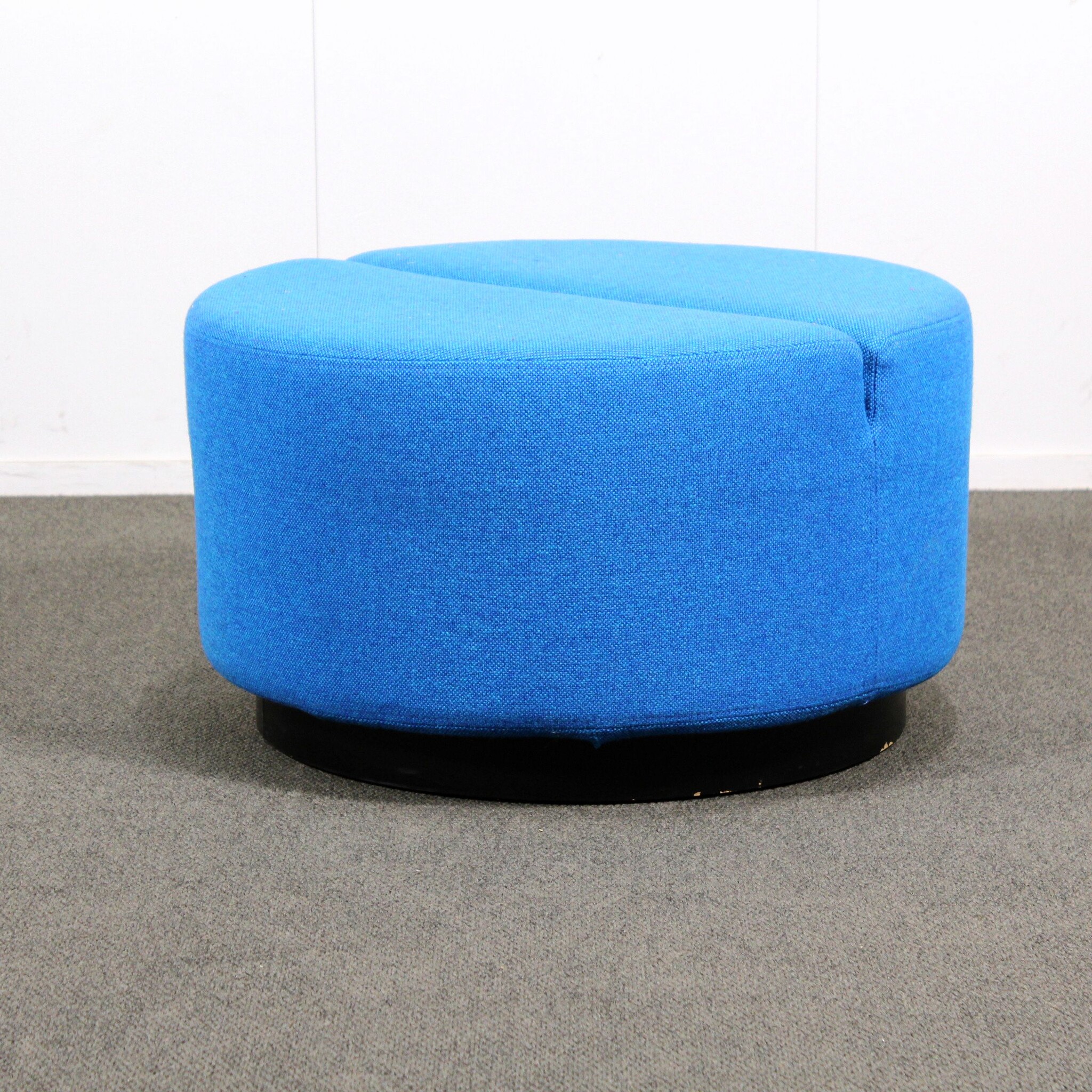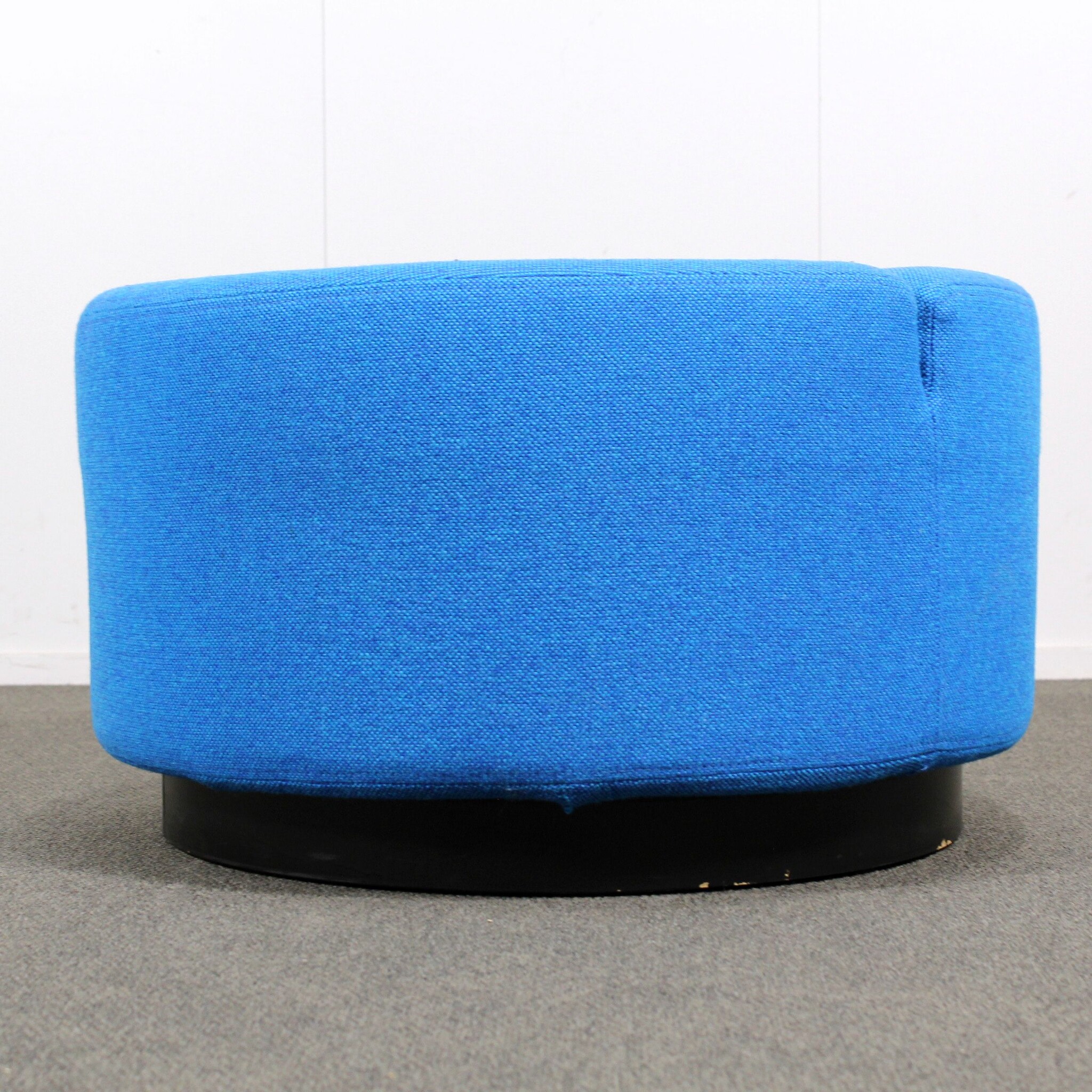 Halkaisija 70 cm, korkeus 40 cm. Kangas sininen, sokkelijalusta musta.