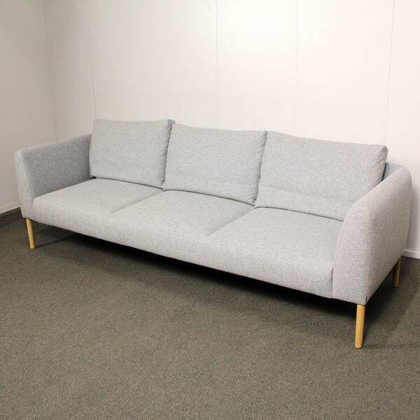 Käytetty, hyväkuntoinen Martela Nooa sohva. Tässä sohvassa on siisti harmaa kangasverhoilu ja puujalat.