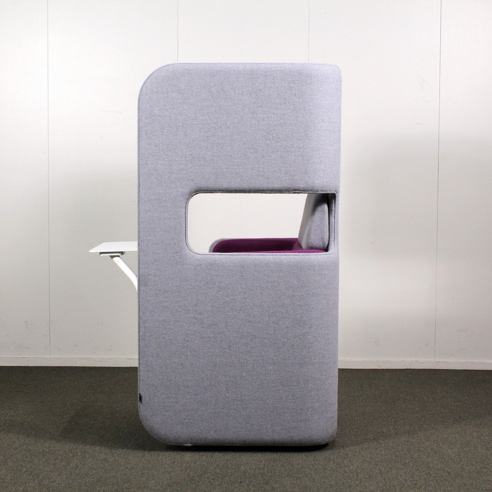 Hyväkuntoinen, käytetty Martelan Pod sarjan vetäytymistuoli. Tuolissa on kääntyvä pöytätaso sekä pyörivä jalusta. Erinomaiset akustiset ominaisuudet esimerkiksi puhelinpalaverien pitämiseen.
