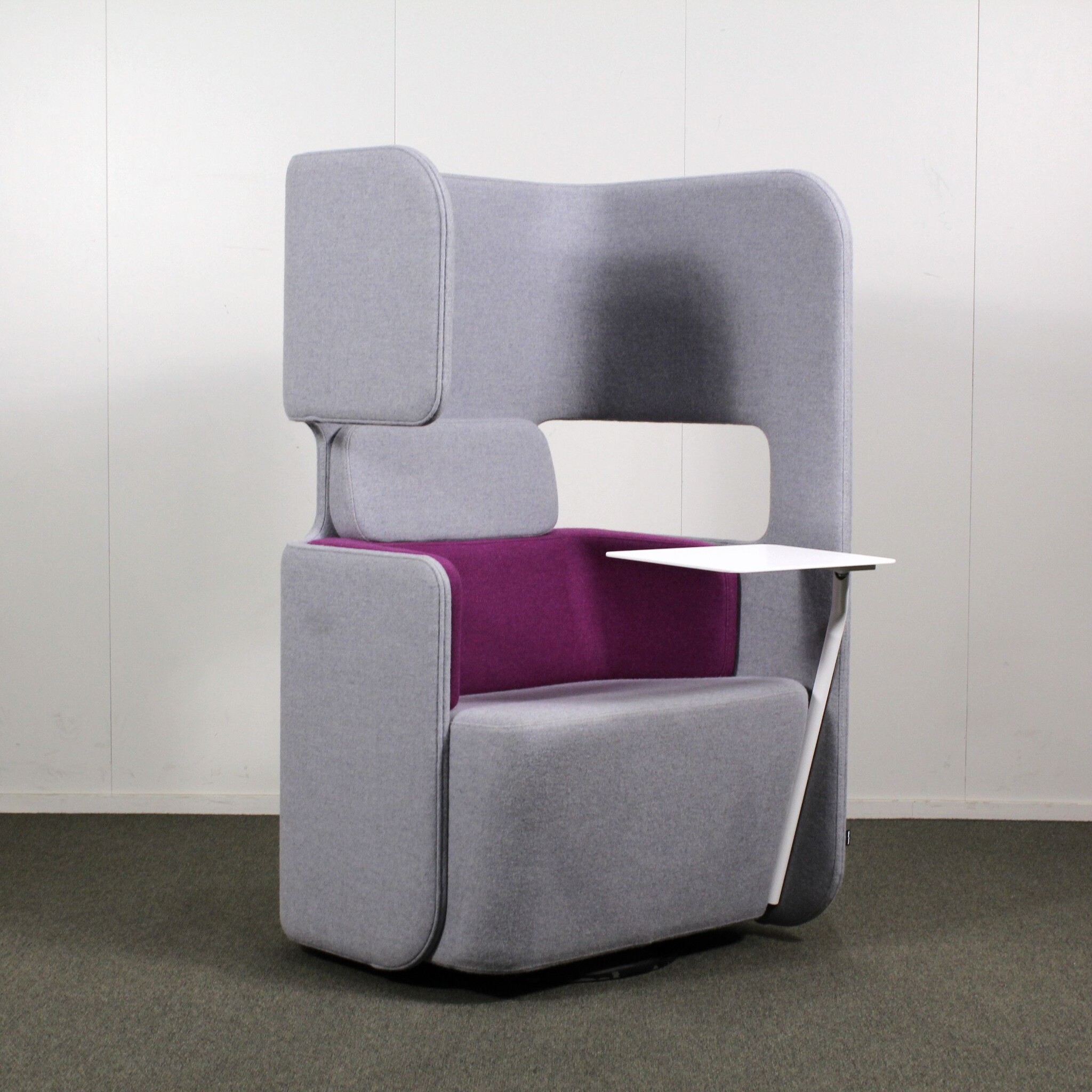 Martela Podseat nojatuoli, kääntyvä jalusta ja pöytä, harmaa / violetti
