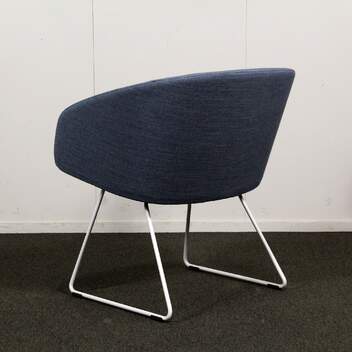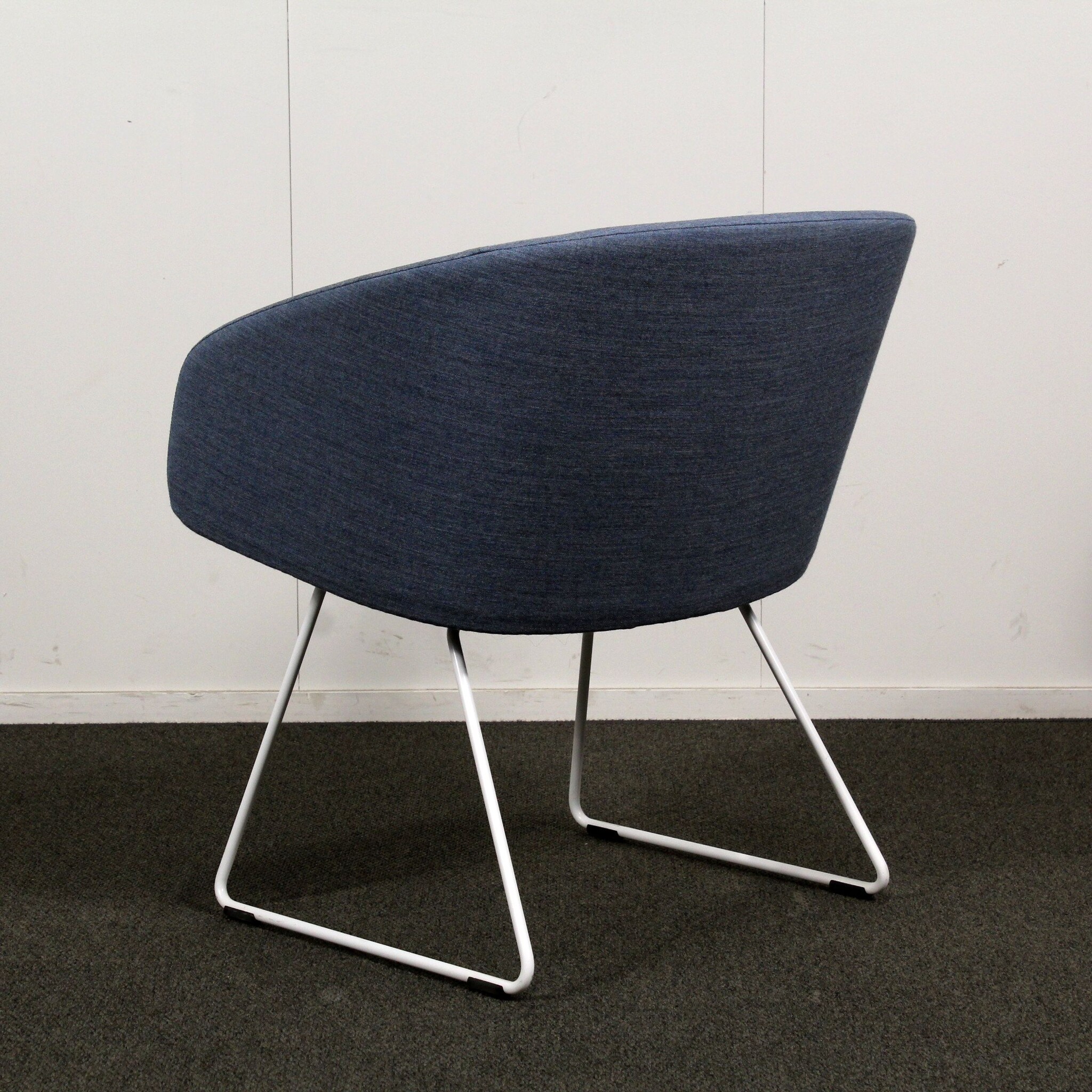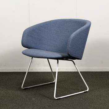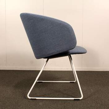 Käytetty Martela Sola nojatuoli, siistissä kunnossa. Tässä tuolissa on ympäriverhoiltu istuinosa sekä tyylikkät taivutetut metallijalat.