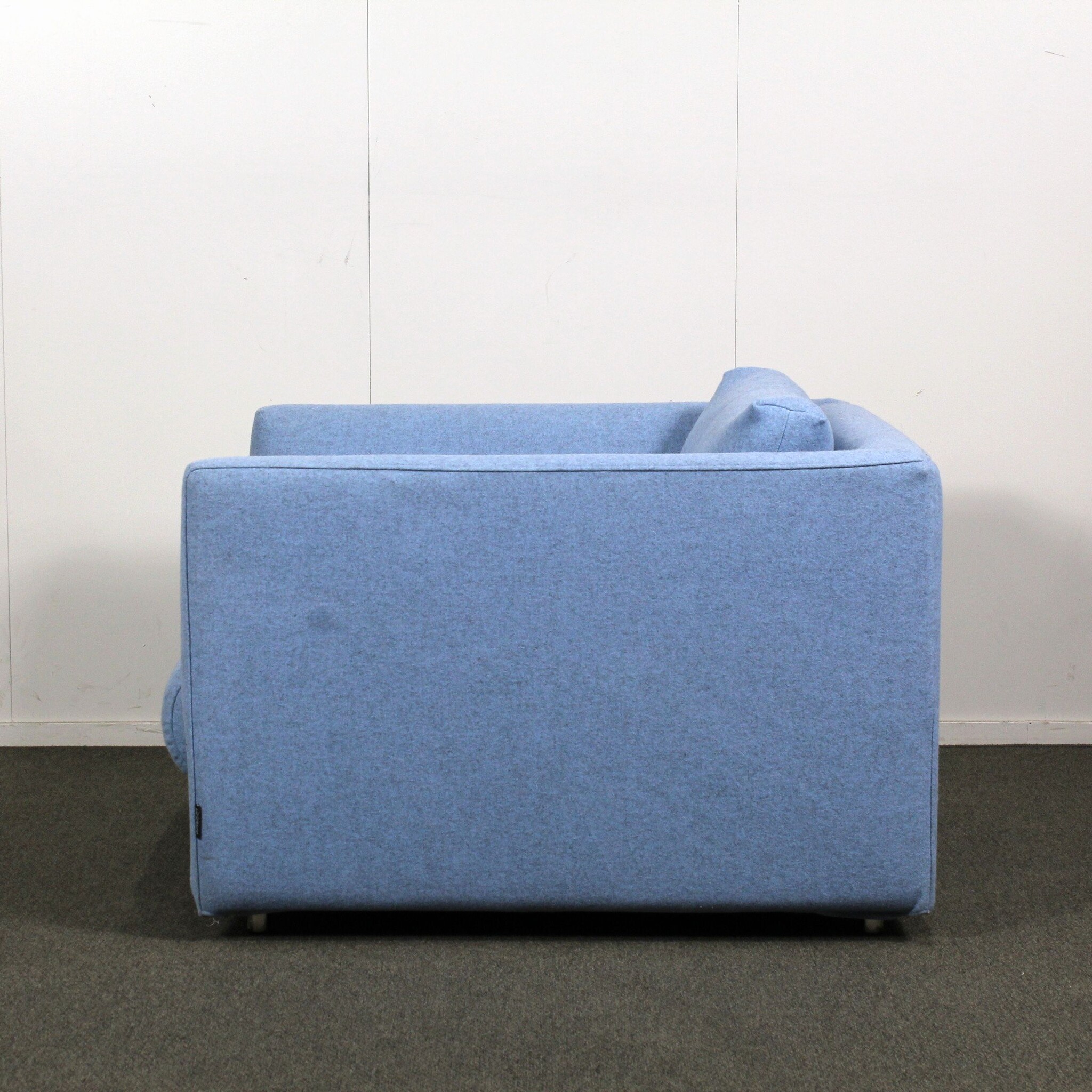 Kangasverhoilu vaalean sininen. Mitat: 92 x 92 x 60 cm.