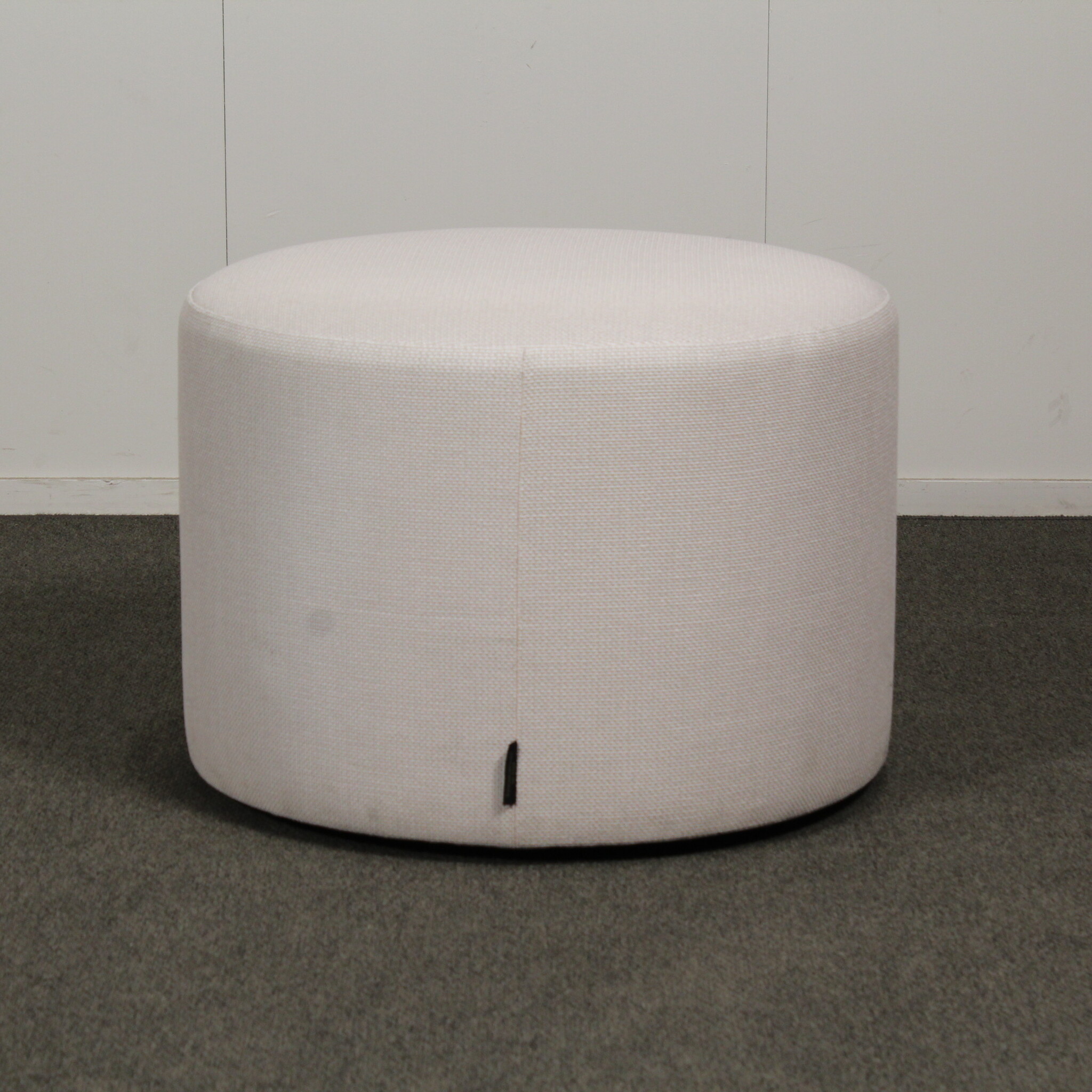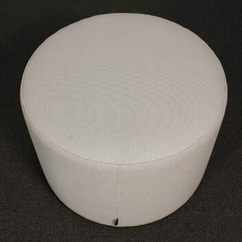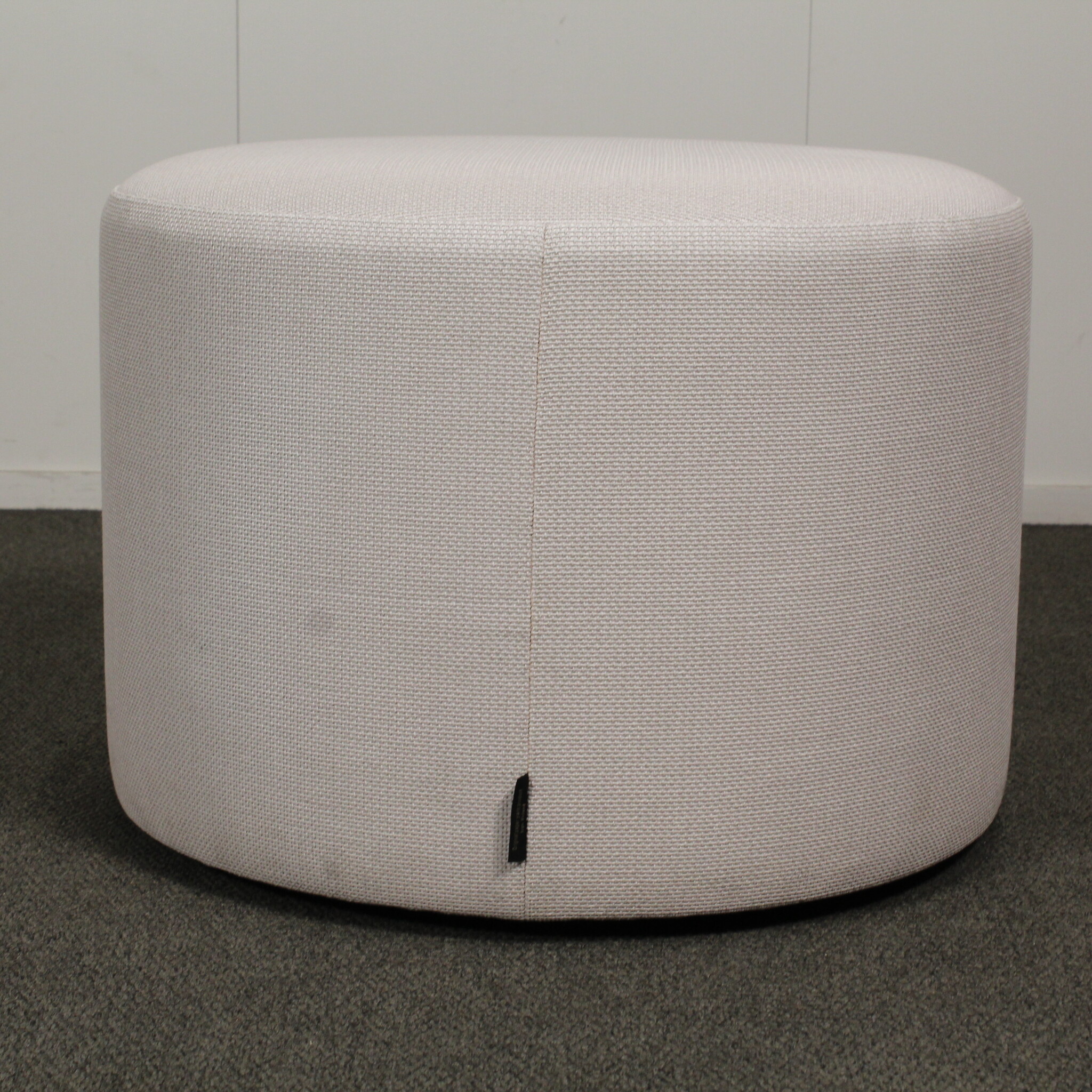 Halkaisija 60 cm, korkeus 43 cm. Verhoilu harmaa
