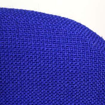 Lenkkijalusta valkoinen, istuinverhoilu sininen.