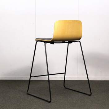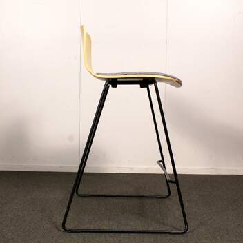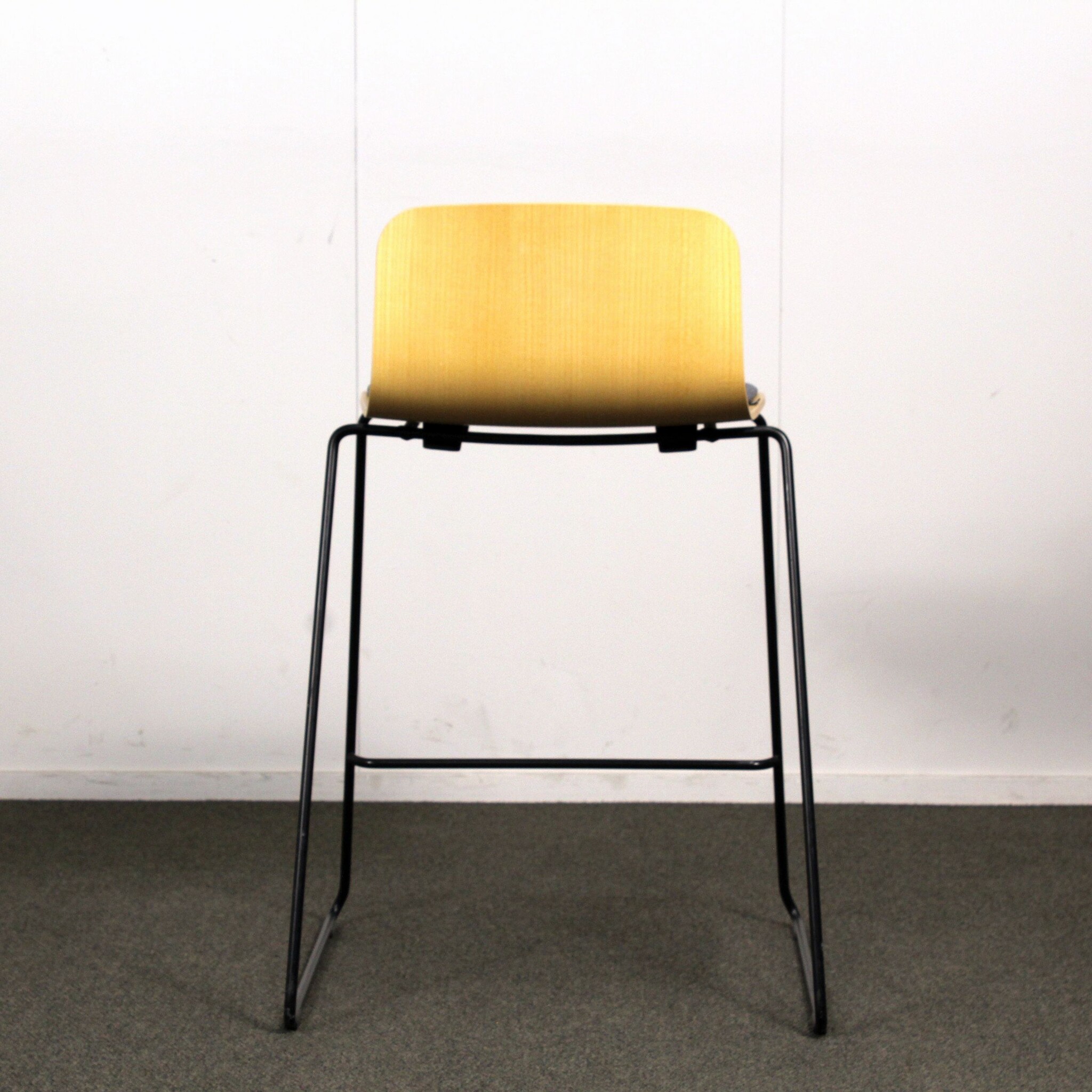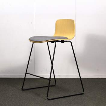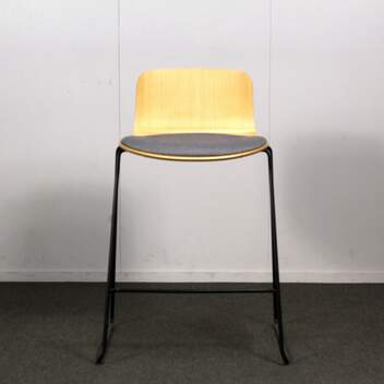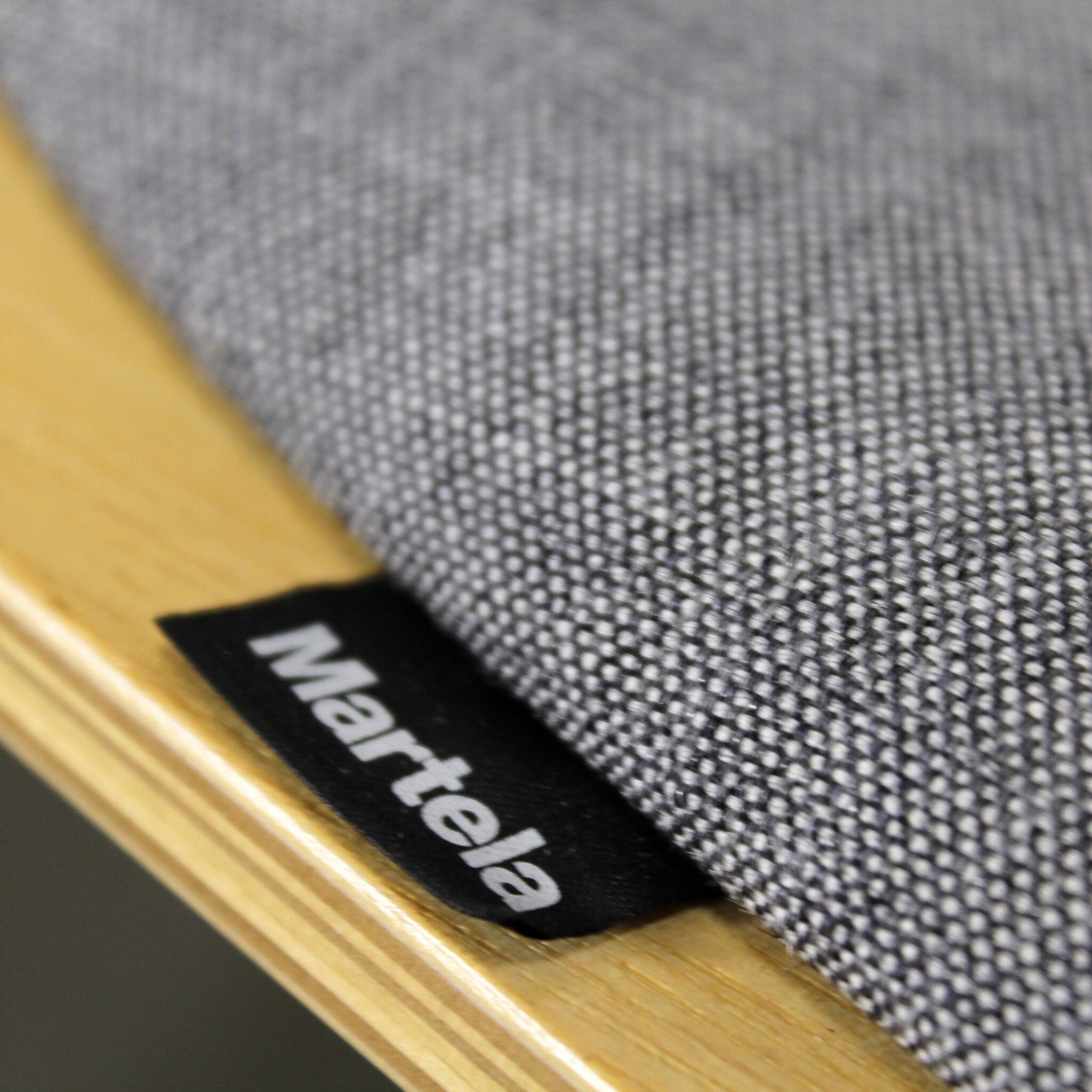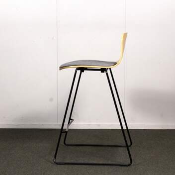 Erittäin hyvänkuntoinen, käytetty Martela Sola-istuinsarjan baarijakkara. Tässä tuolissa on puinen istuinkuppi, jossa on miellyttävä kangasverhoilu.