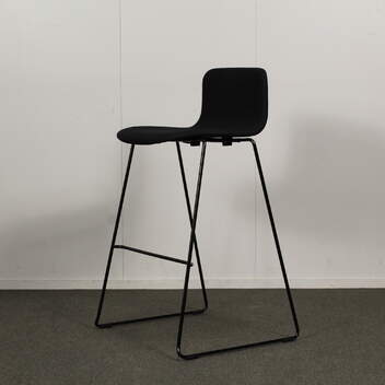 Erittäin hyvänkuntoinen, käytetty Martela Sola-istuinsarjan baarijakkara. Tässä tuolissa on siisti kangasverhoilu.
