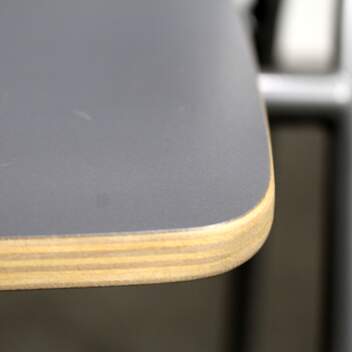Runka harmaa pulverimaalattu metalli, istuinkuppi harmaa laminaatti, käsinojat.