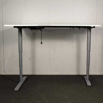 Kansiväri valkoinen. Kannen koko 200 x 120 cm. Kannen kätisyys vasen. Korkeudensäätöalue 64-129 cm. Jalusta pulverimaalattu harmaa.