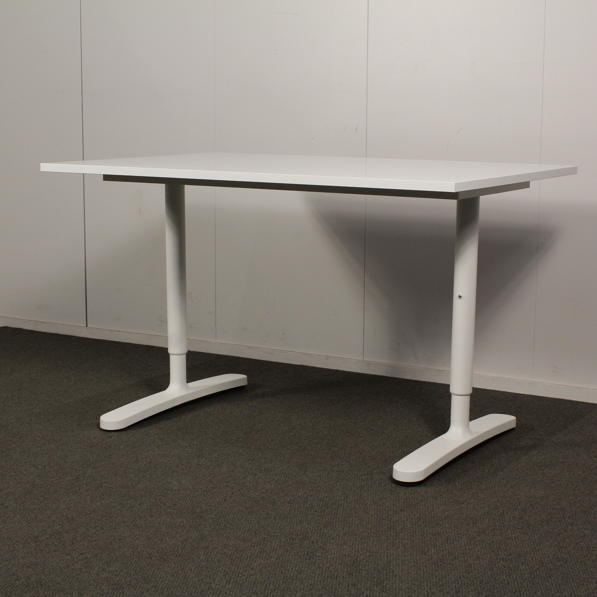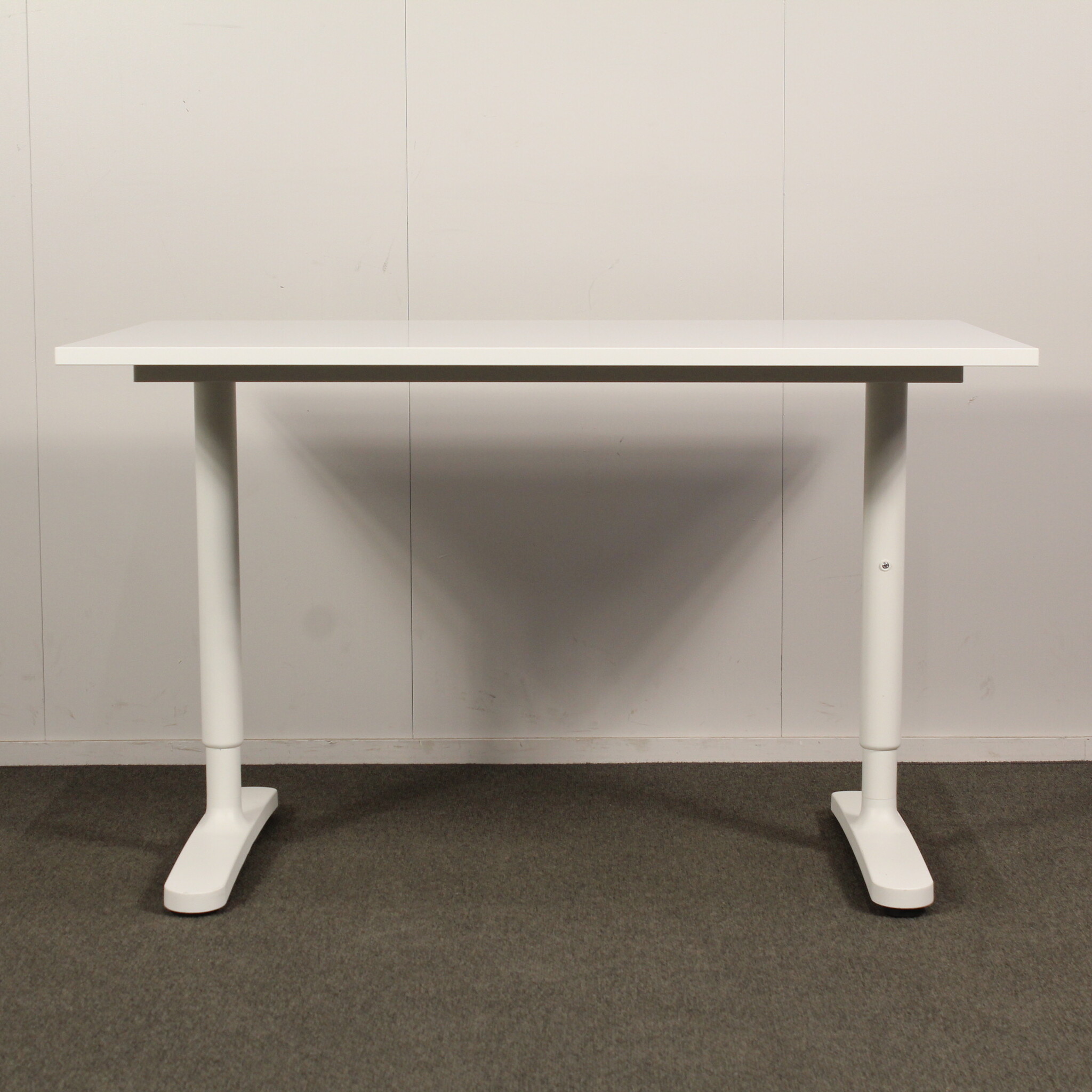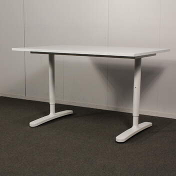 Käytetty Ikea Bekant työpöytä, siistissä kunnossa. Tässä Bekant työpöydässä on tukeva T Mallinen jalusta, jossa on manuaalinen korkeudensäätö.