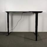Kannet valkoista laminaattia, jalusta pulverimaalattu musta teräs. Säätöalue 70 - 120 cm