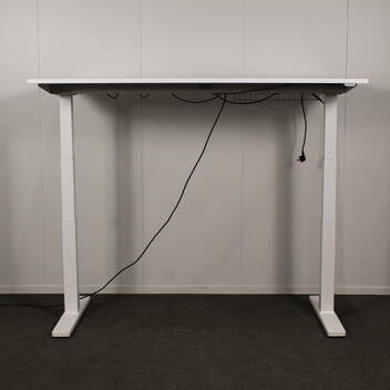 Kansi laminaattia, väri valkoinen. Jalusta maalattua metallia, väri valkoinen. Korkeudensäätöalue 63-128cm.