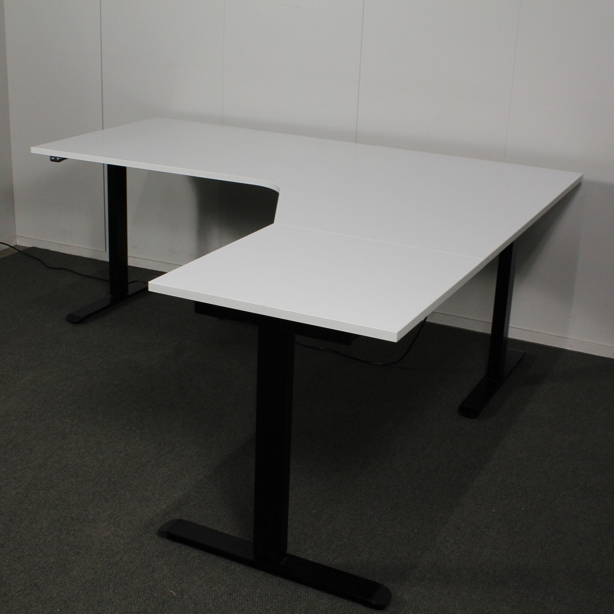 Linak Kulmasähköpöytä, valkoinen / musta, 180 x 180 cm, Kätisyys: Valittavissa