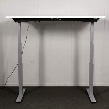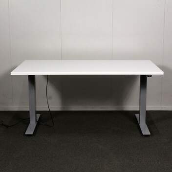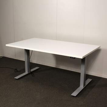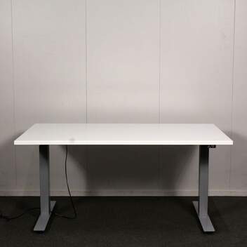 Kansi laminaattia, väri valkoinen. Jalusta pulverimaalattu, väri harmaa. Korkeudensäätöalue 64-129cm.