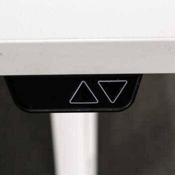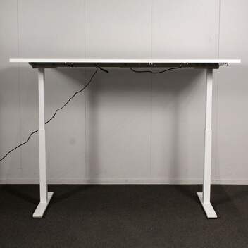 Kansi laminaattia, väri valkoinen. Jalusta pulverimaalattu, väri valkoinen. Korkeudensäätöalue 70-117cm.