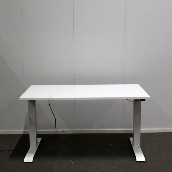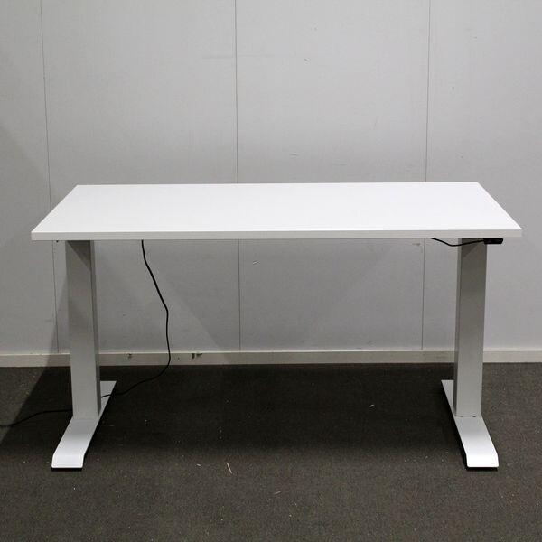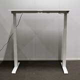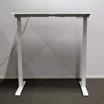 Kansi laminaattia, väri valkoinen. Jalusta pulverimaalattu, väri valkoinen. Korkeudensäätöalue 63-128cm.