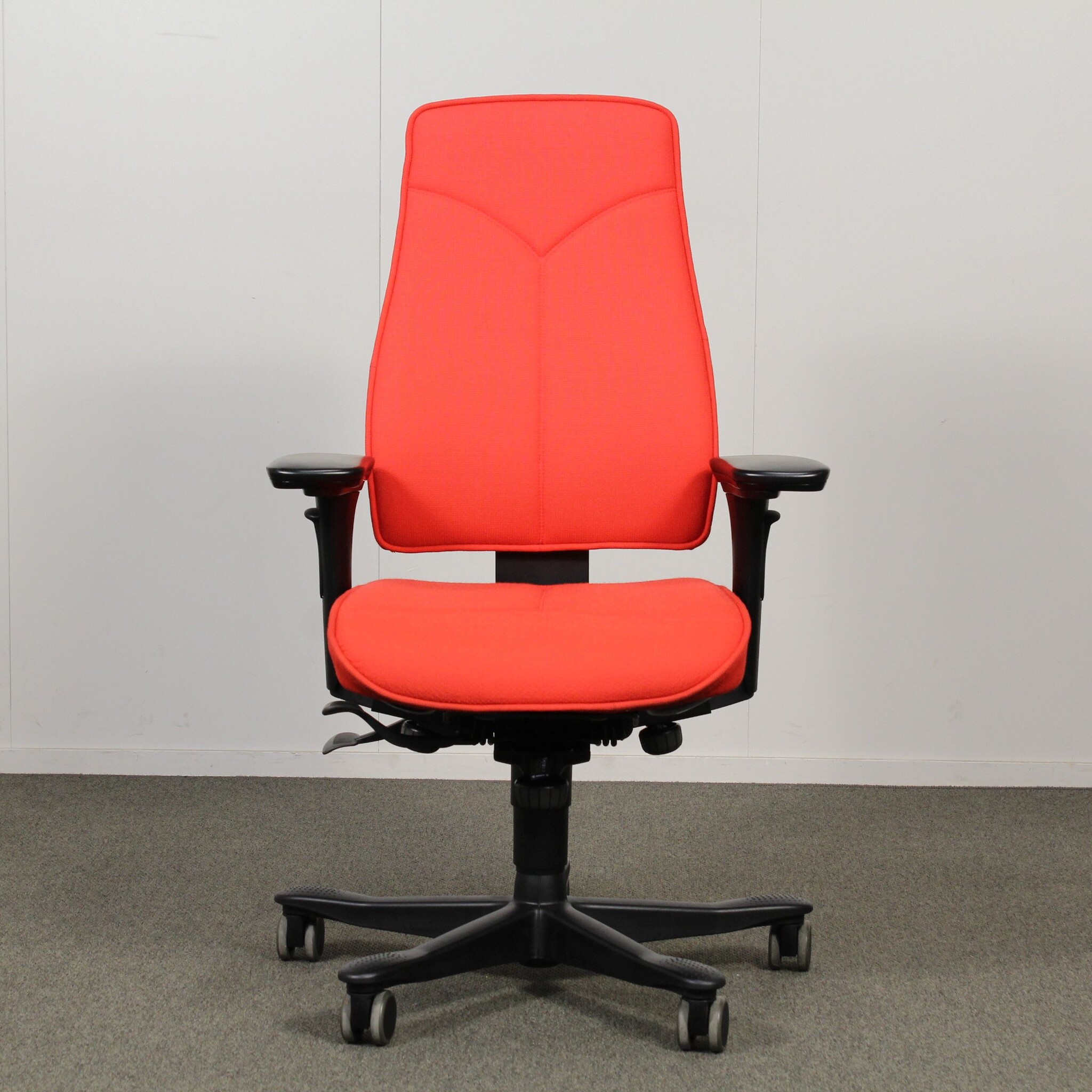 Kinnarps 6000 työtuoli, korkea selkänoja, punainen, käsinojat. D2882