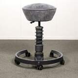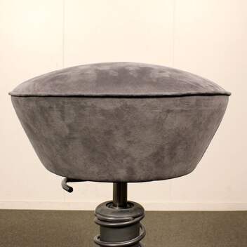 Istuin verhoiltu harmaa, runko musta.
