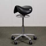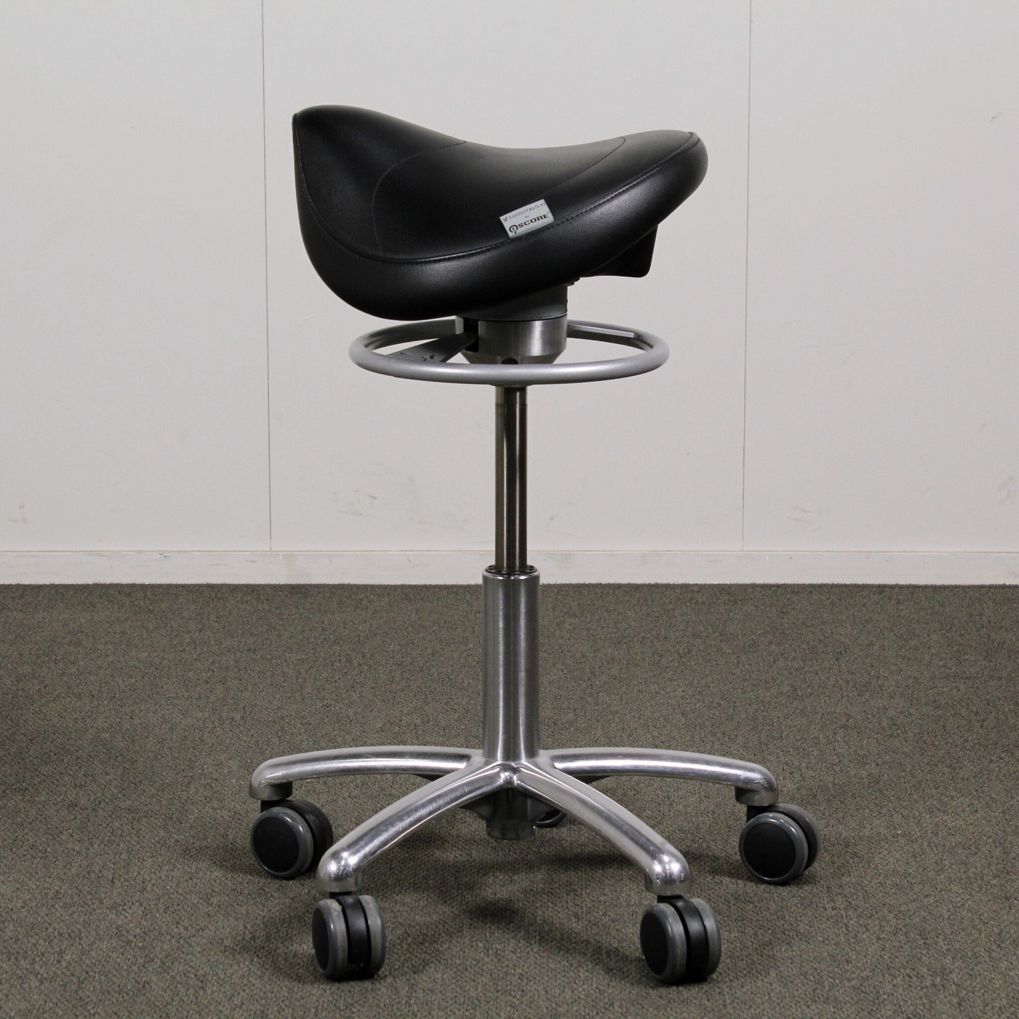 Käytetty Score satulatuoli, siistissä kunnossa. Tässä satulatuolissa on keinuva yksiosainen istuin ja korkeudensäätö kaasujousella.