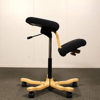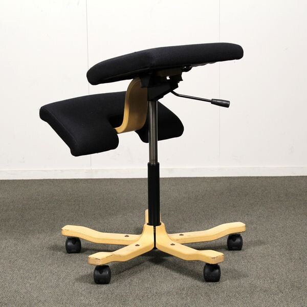 Käytetty Varier Wing Balans on ergonominen työtuoli, joka tukee aktiivista ja luonnollista istumista. Keinuvamekanismi ja polvituet edistävät hyvää ryhtiä ja vähentävät selän kuormitusta. Erinomainen valinta toimistoon, kotitoimistoon ja ergonomiseen työsk
