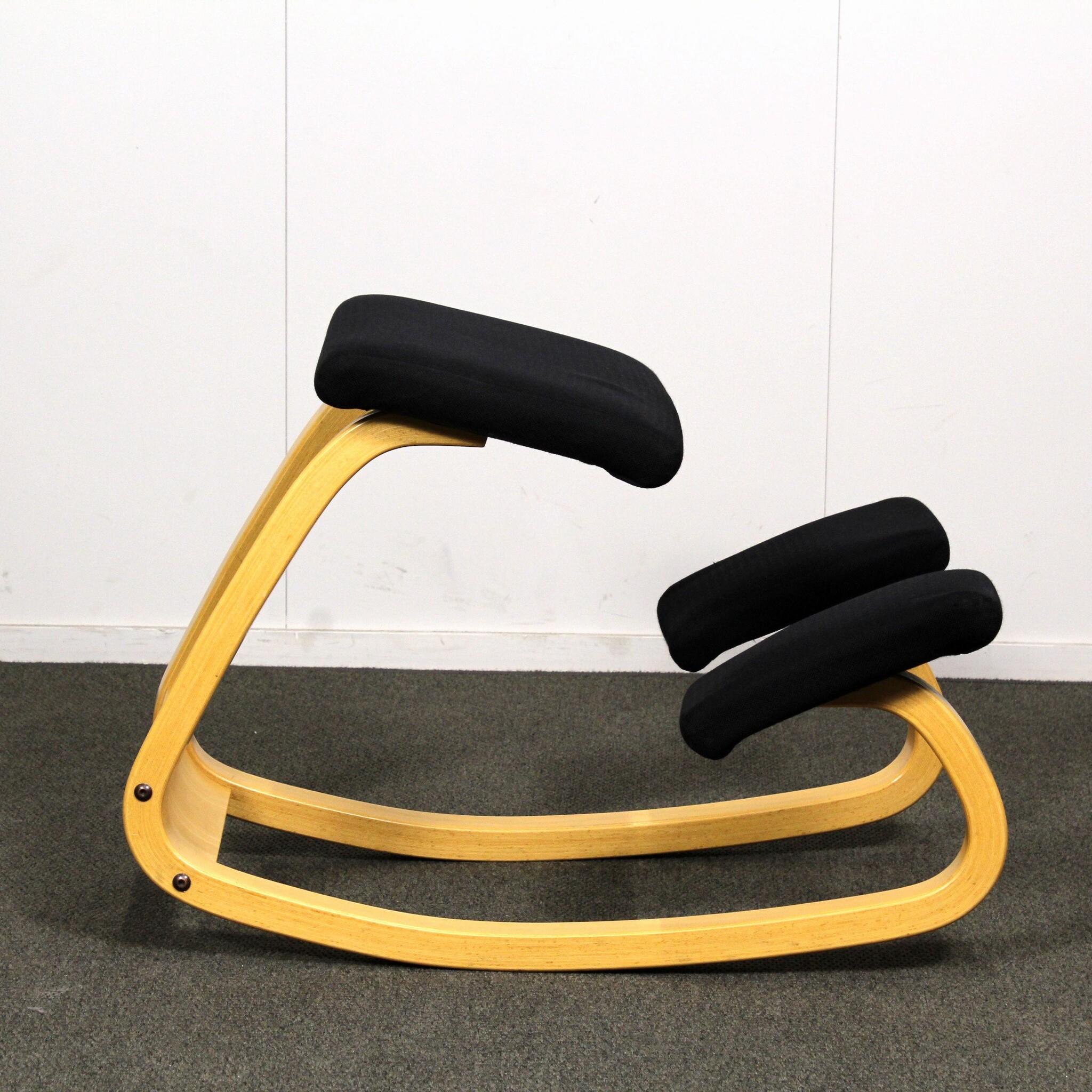 Käytetty, siistikuntoinen polvituoli. Ergonomisesti muotoiltu, keinuva tuoli kannustaa istumaan ryhdikkäästi ja vartaloa aktivoiden.