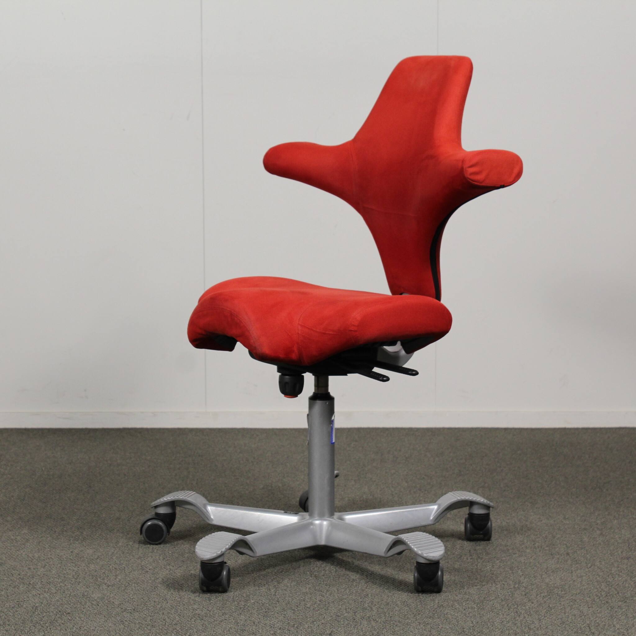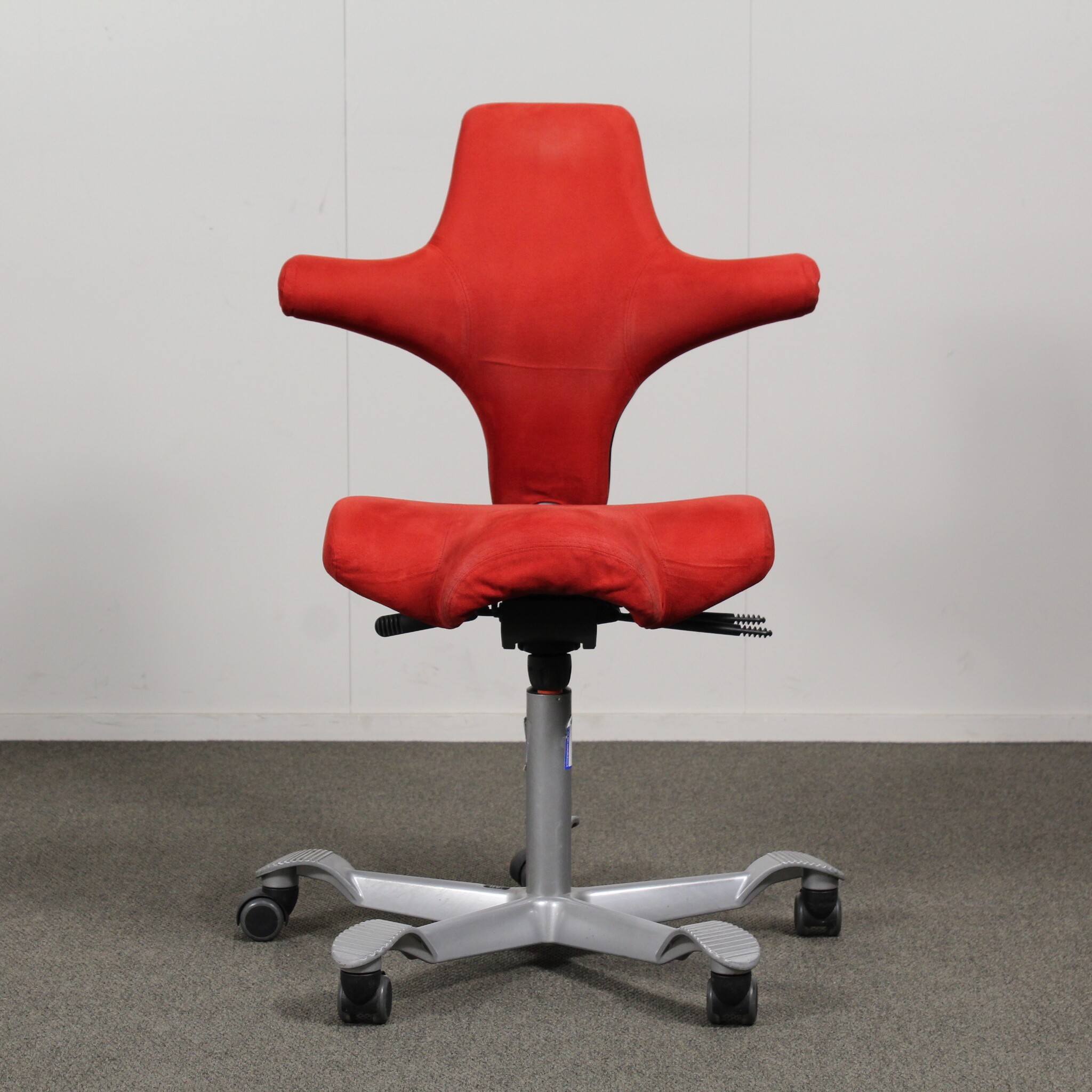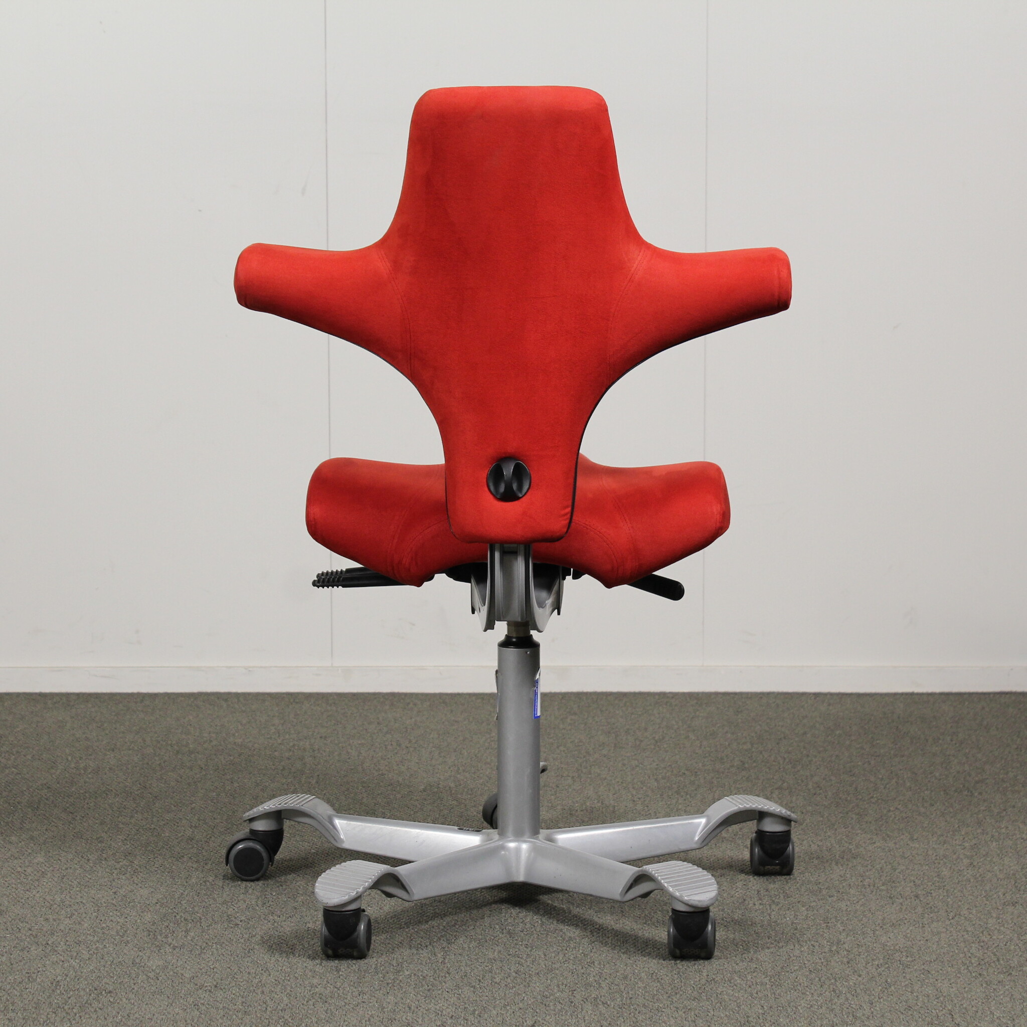 Käytetty Håg Capisco työtuoli, siistissä kunnossa. Tässä Capisco huipputuolissa on tyylikäs punainen Alcantara- tyylinen verhoilu.