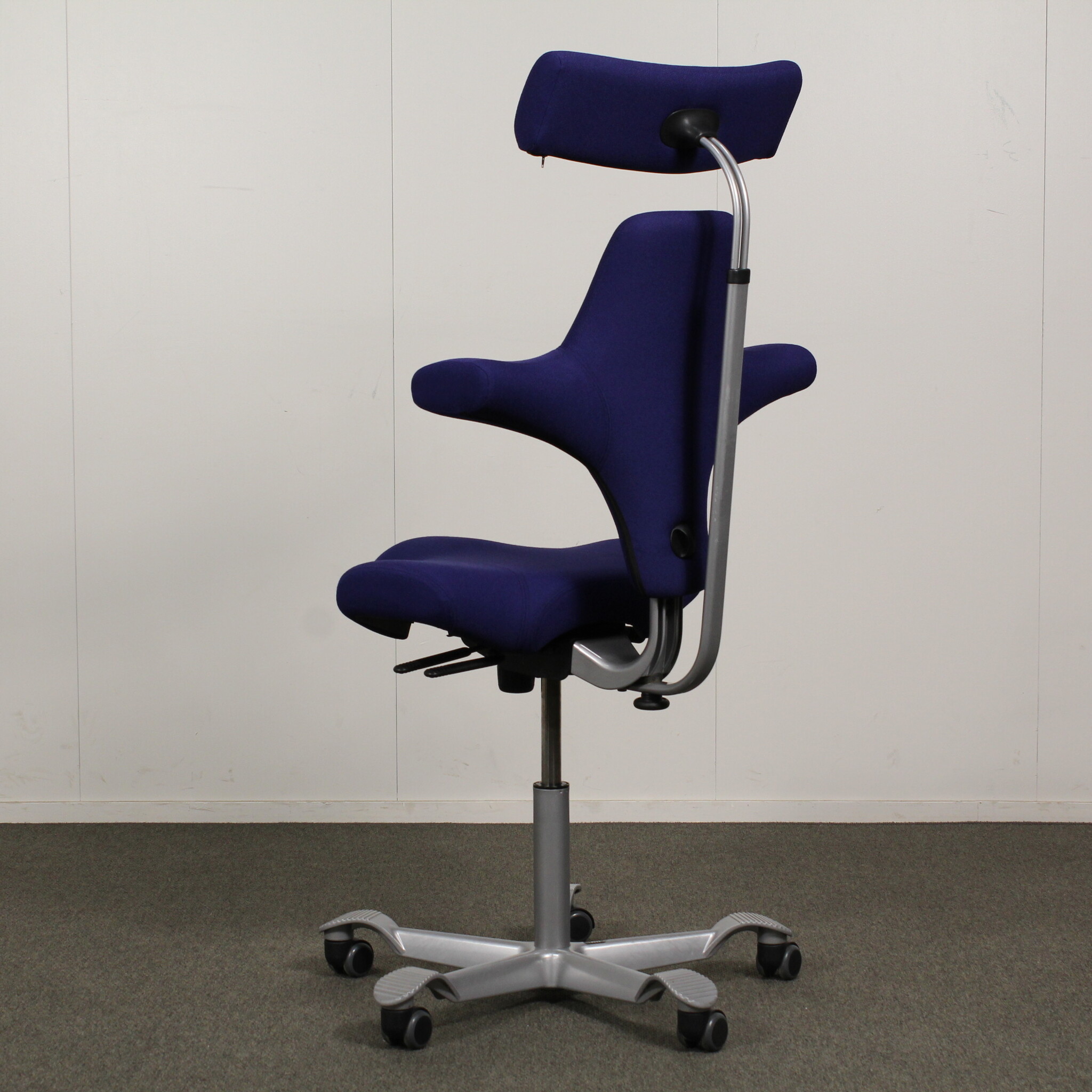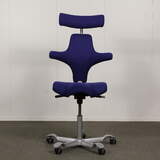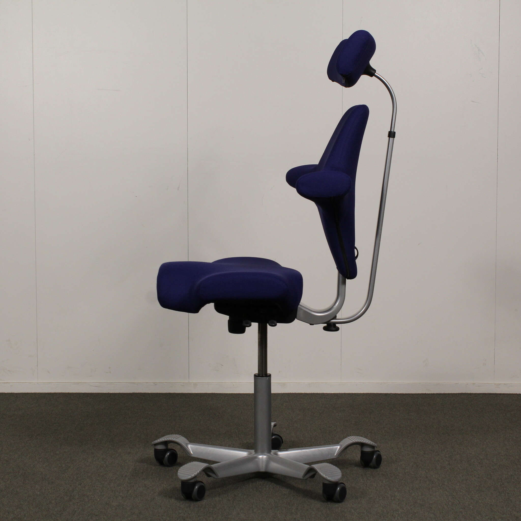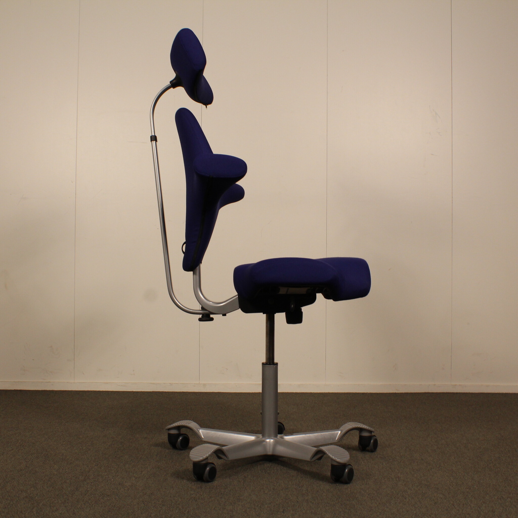 Käytetty Håg Capisco työtuoli, siistissä kunnossa. Tässä Capisco huipputuolissa on lisävarusteena niskatuki.