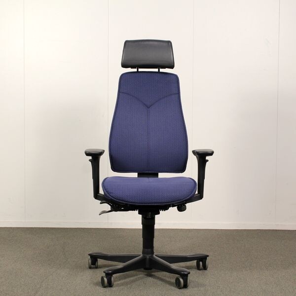 Kinnarps 6000/8000 työtuoli, Korkea selkänoja, sininen, käsinojat, niskatuki