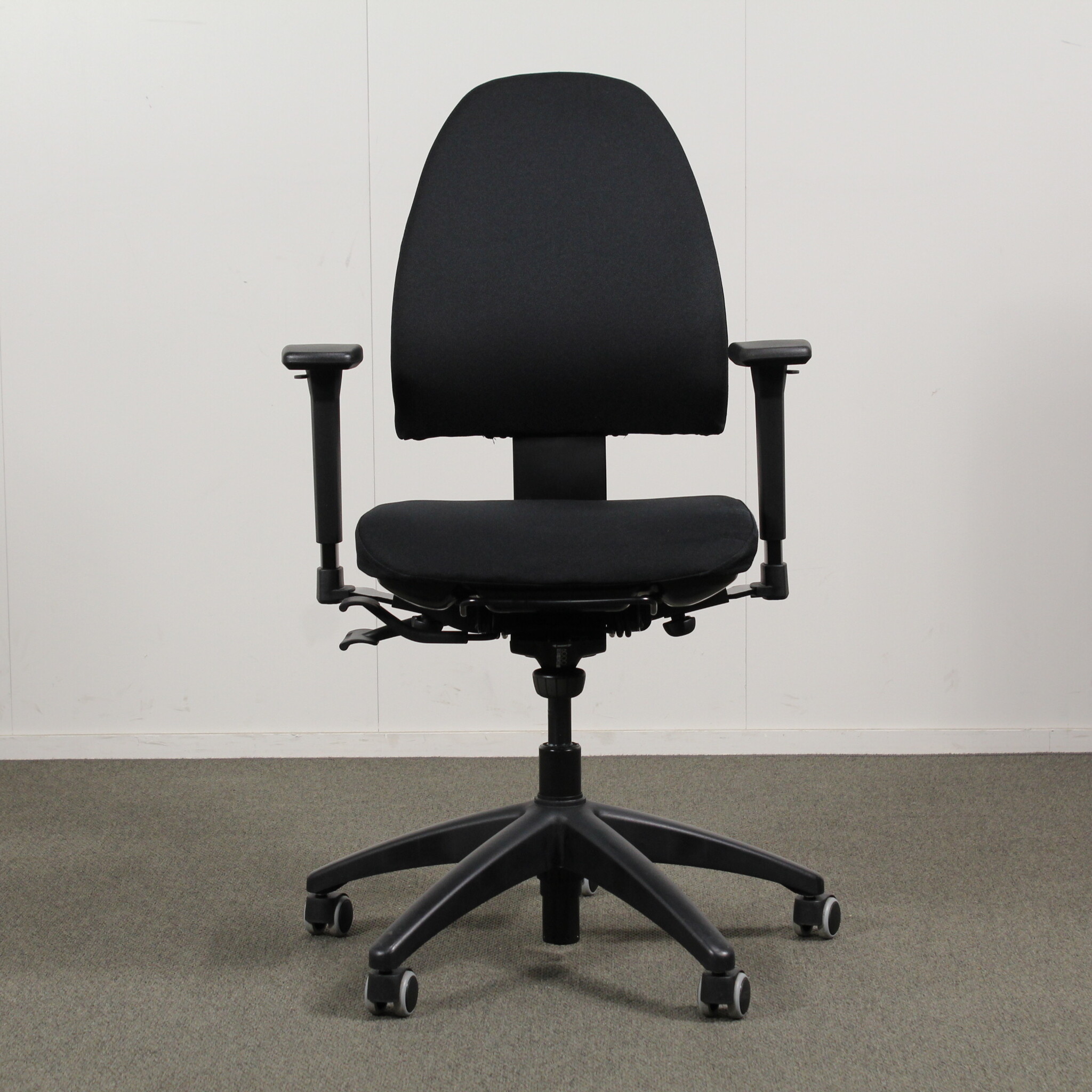 Säädöt: Istuimen korkeuden ja syvyyden säätö, istuimen ja selkänojan kallistuskulman säätö toisistaan riippumatta, selkänojan korkeuden säätö, keinu, käsinojat.
