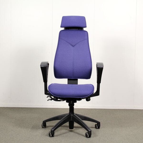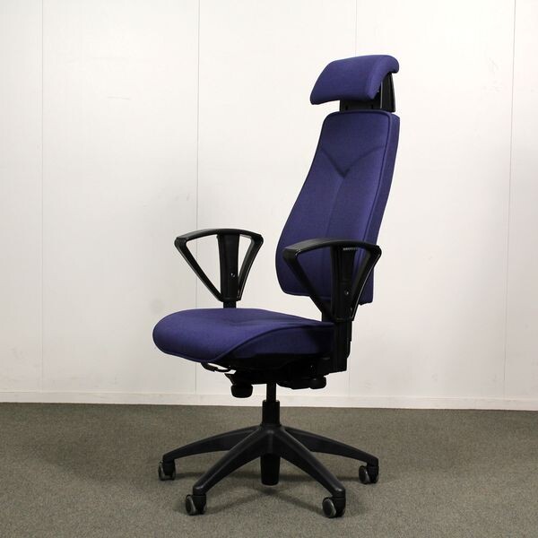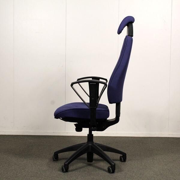 Kinnarps 6000/8000 työtuoli, sininen, niskatuki, käsinojat