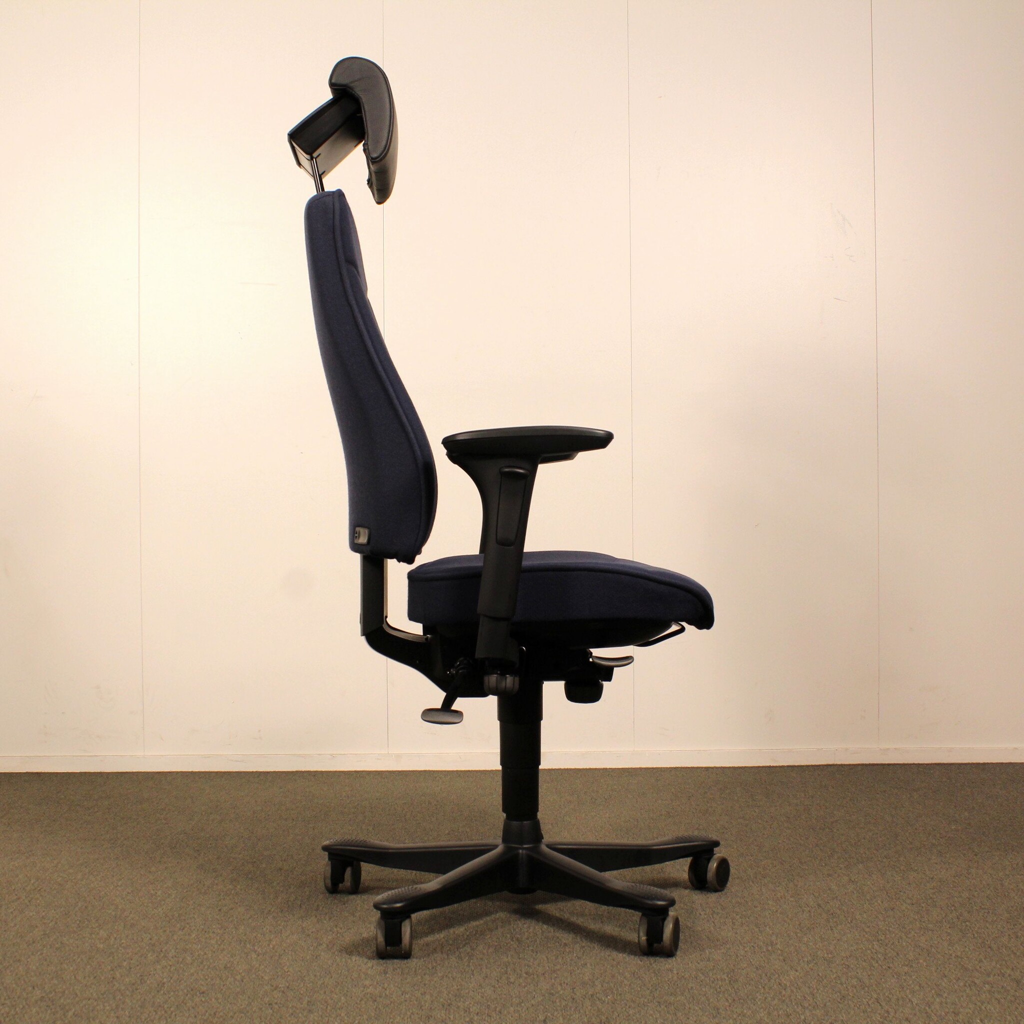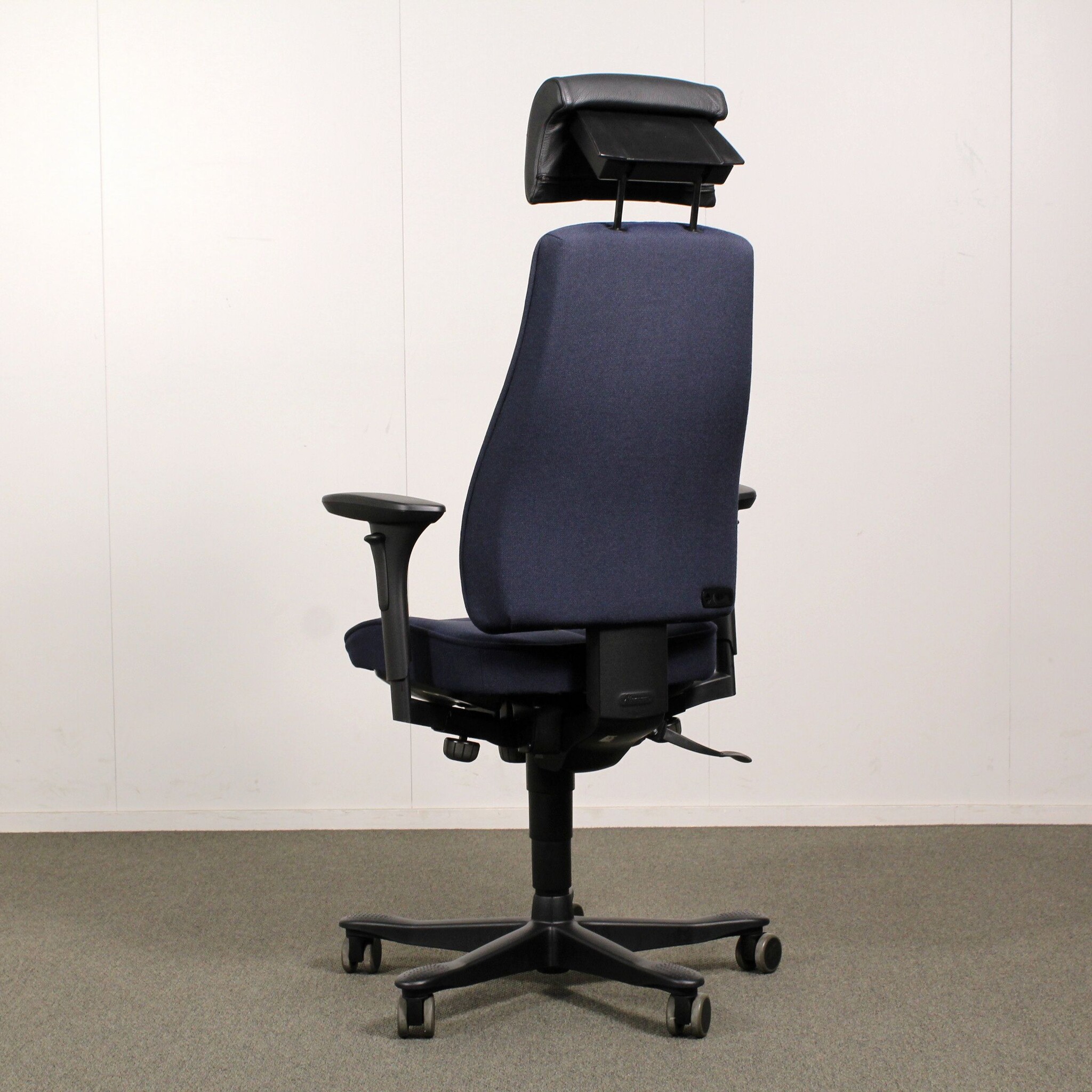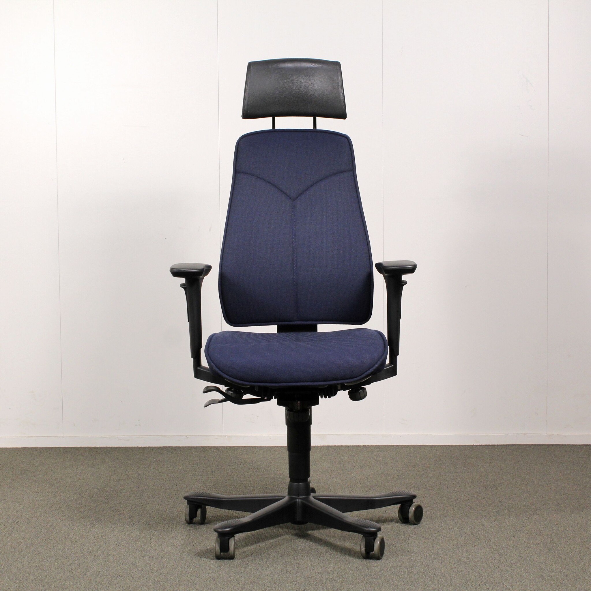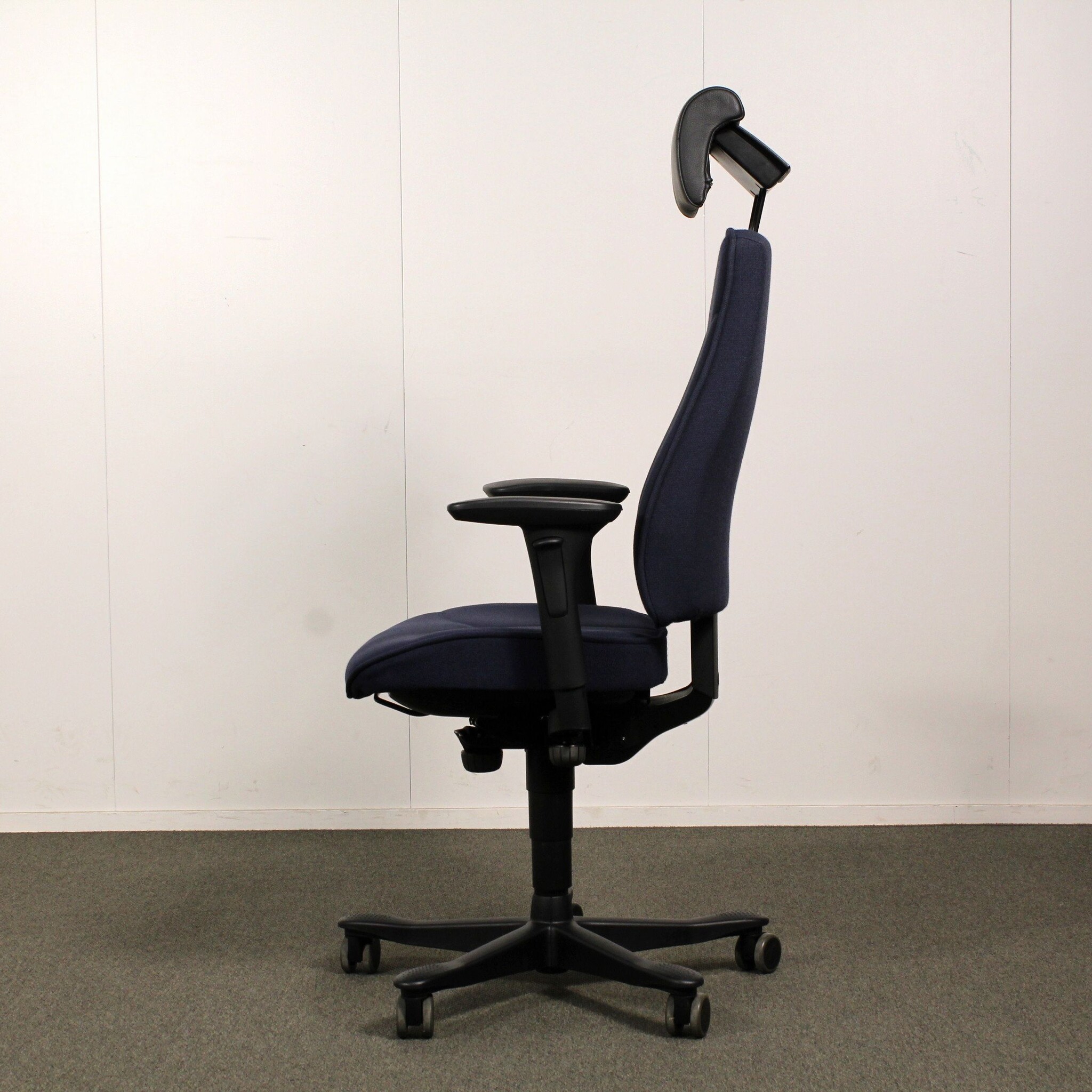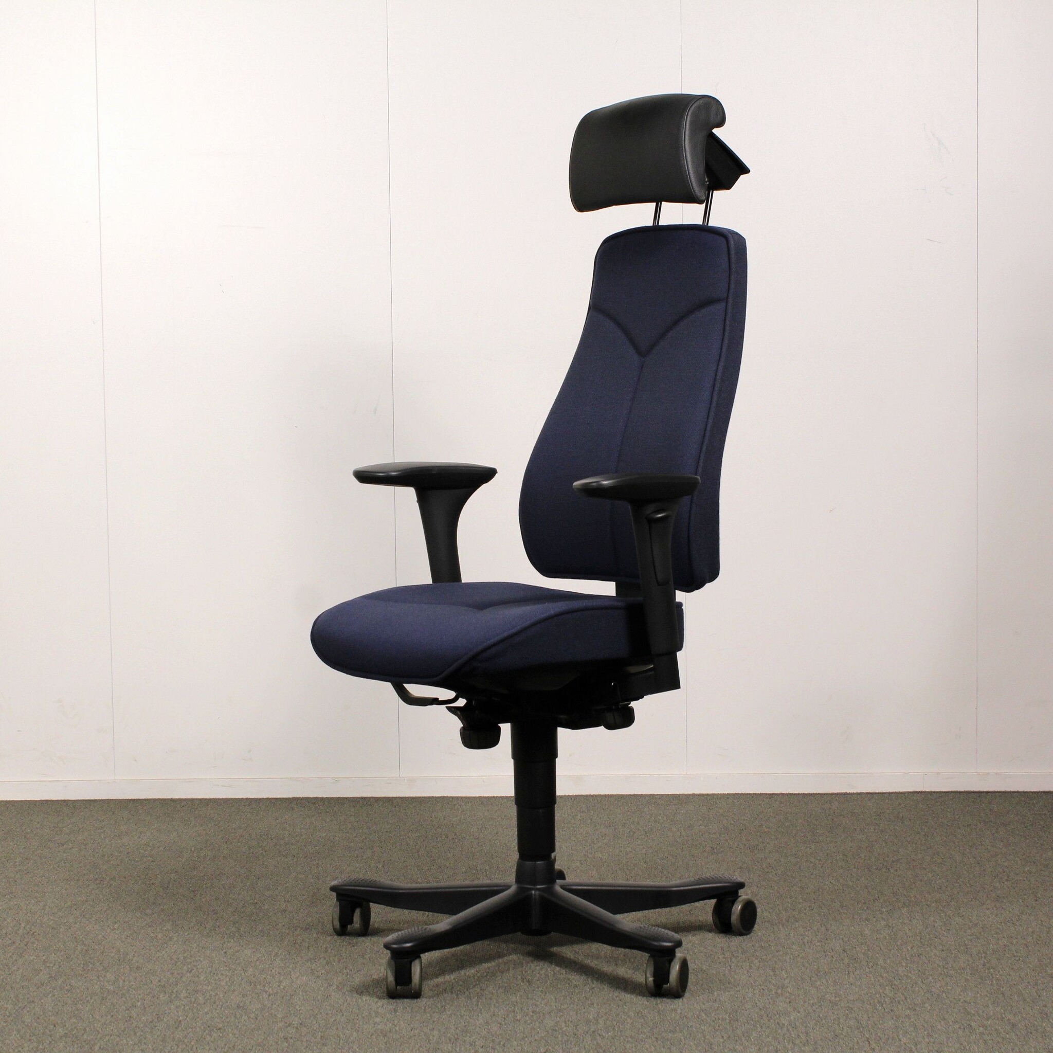 Kinnarps 6000/8000 työtuoli, tumma sininen, käsinojat, niskatuki