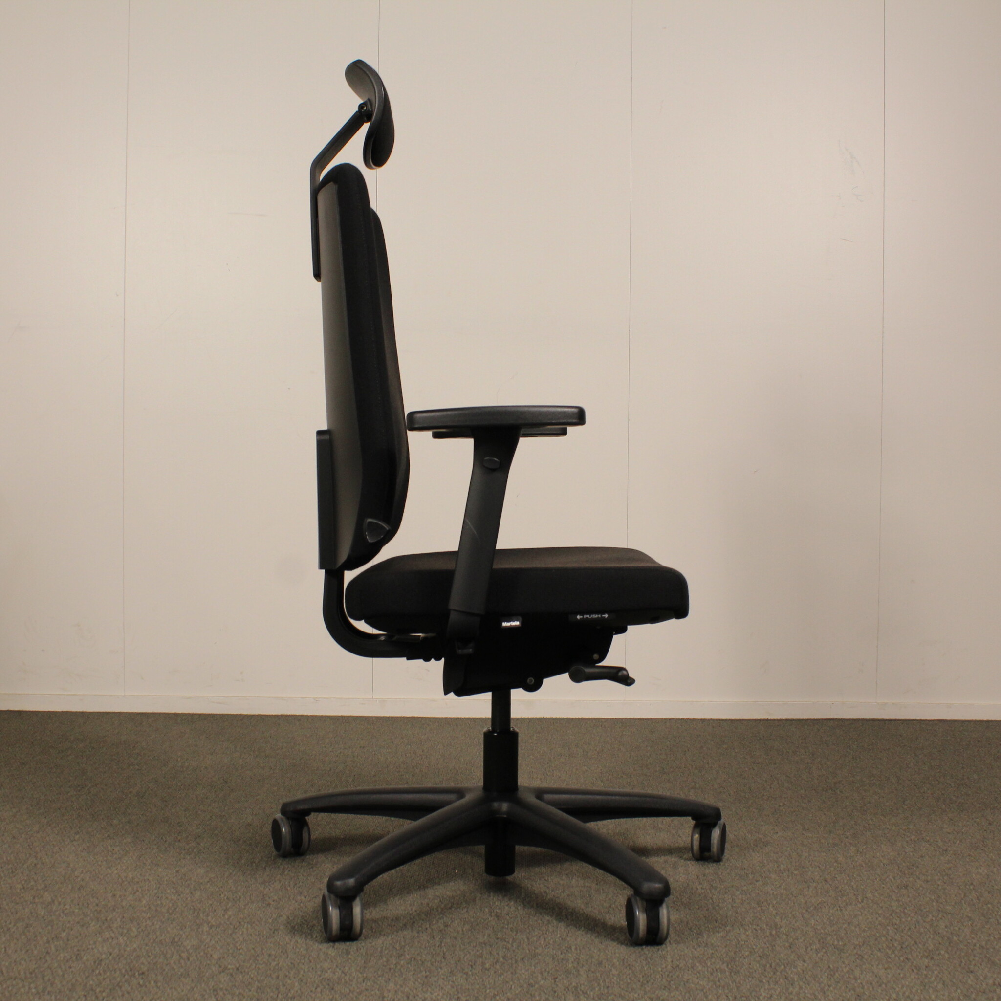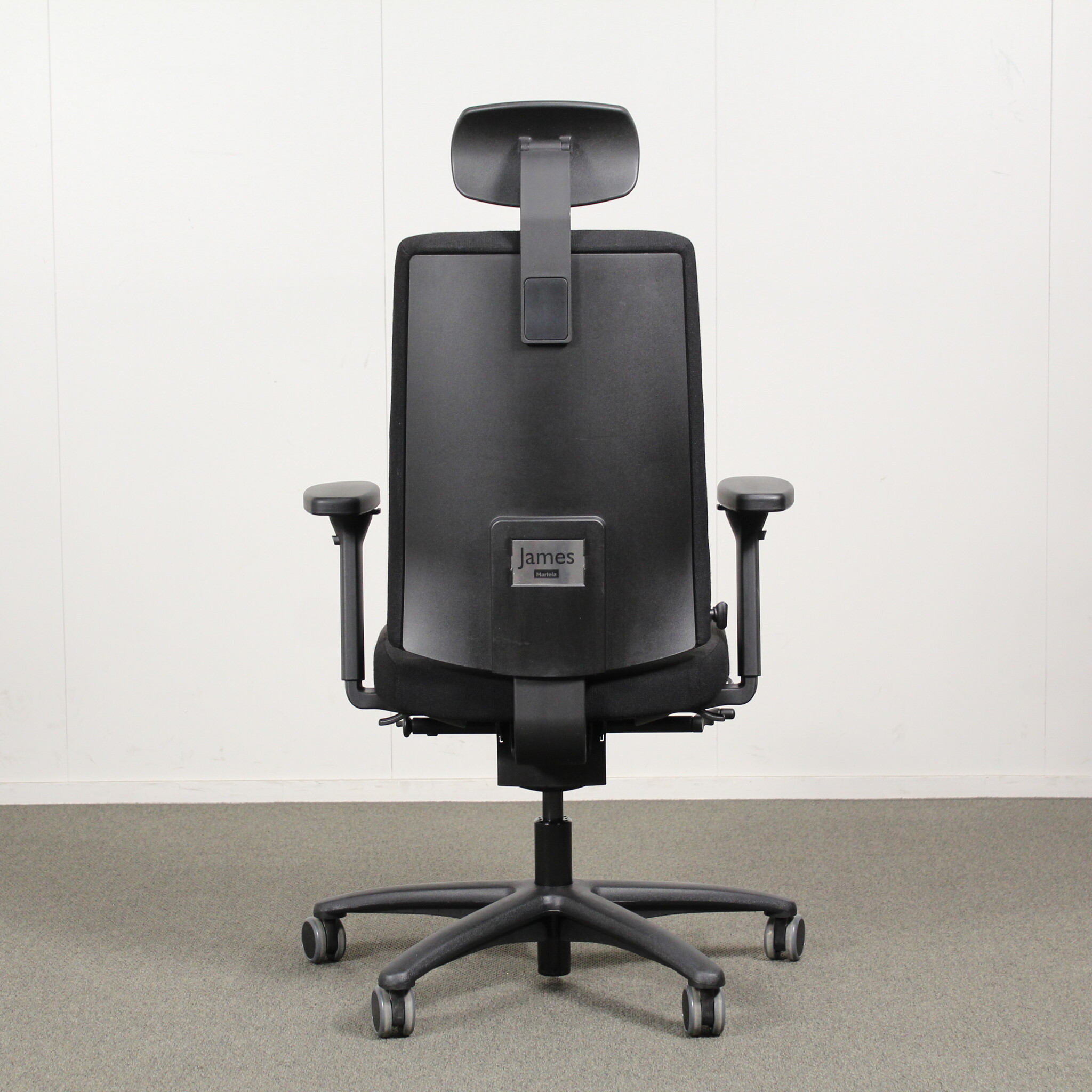 Martela James työtuoli, musta, käsinojat ja niskatuki