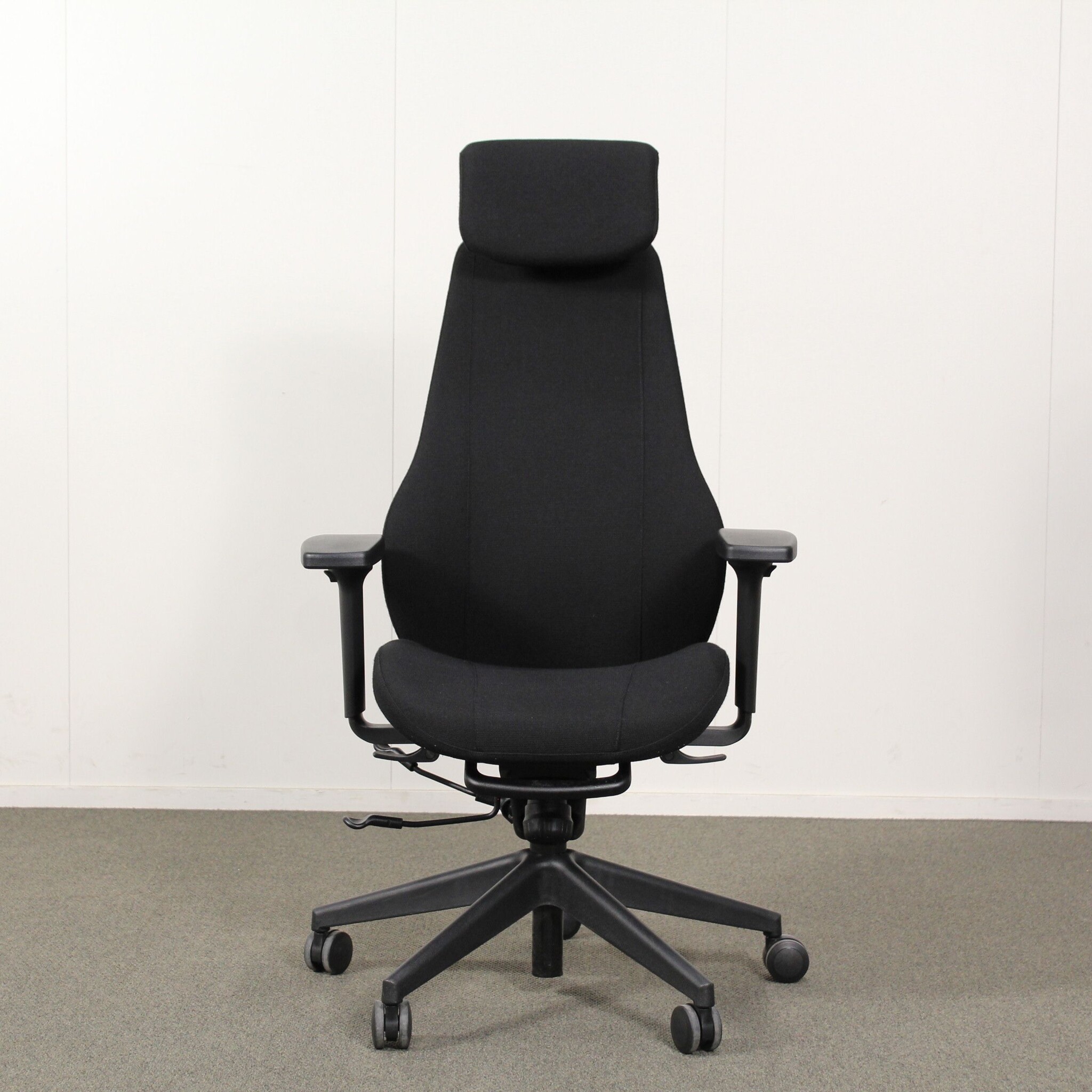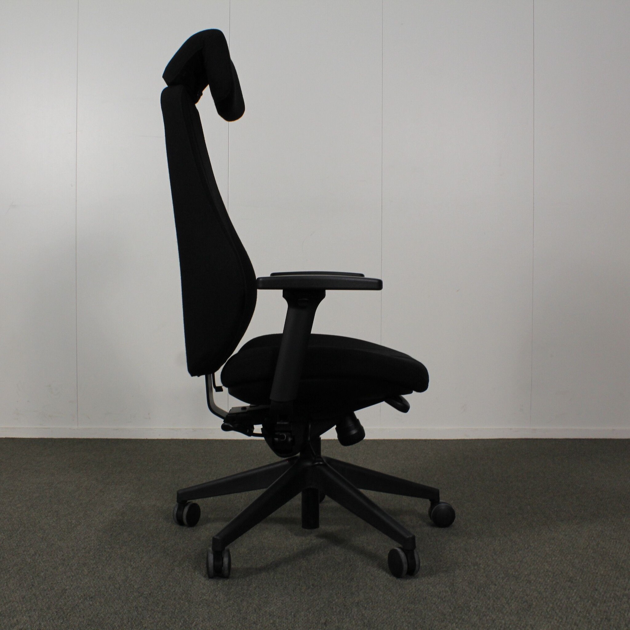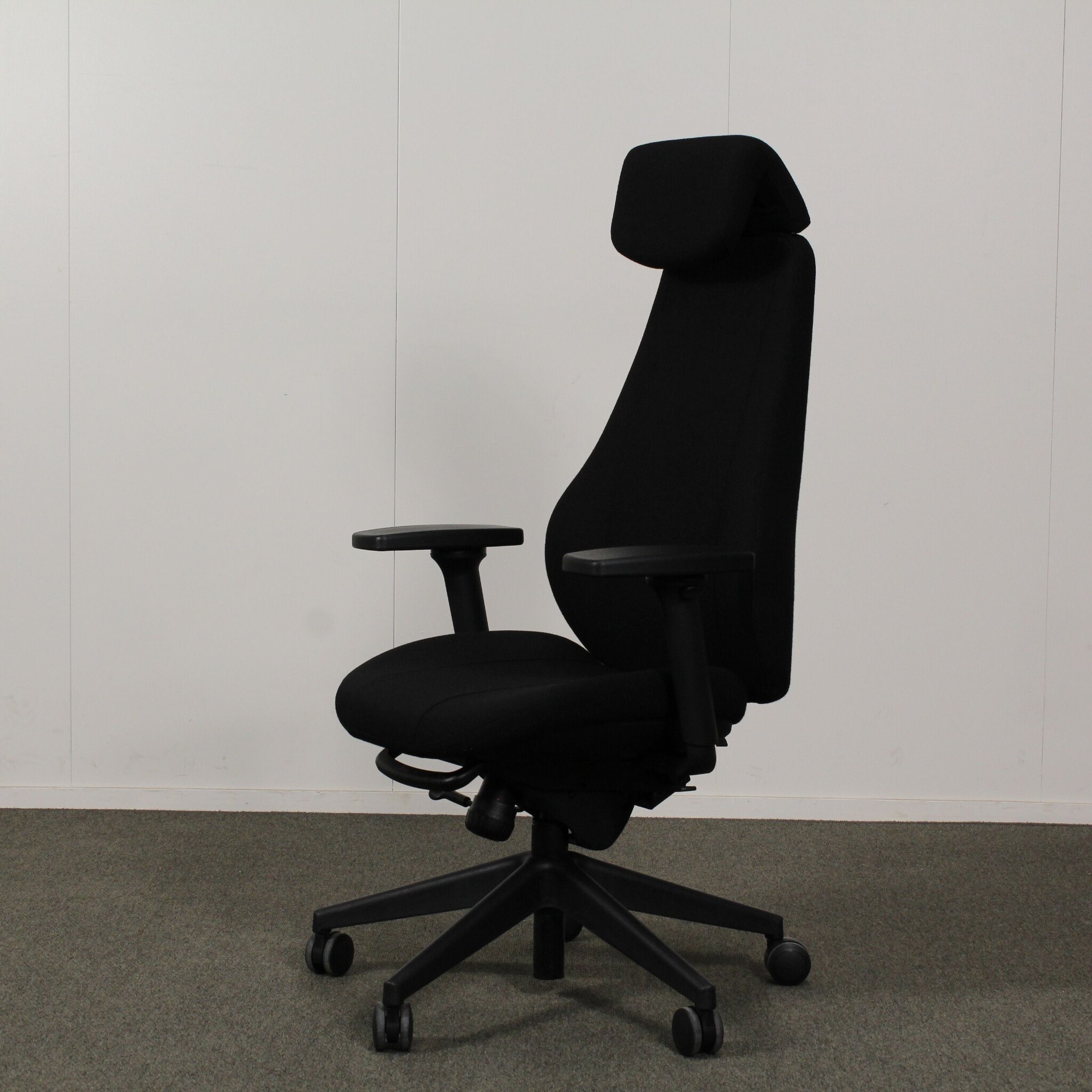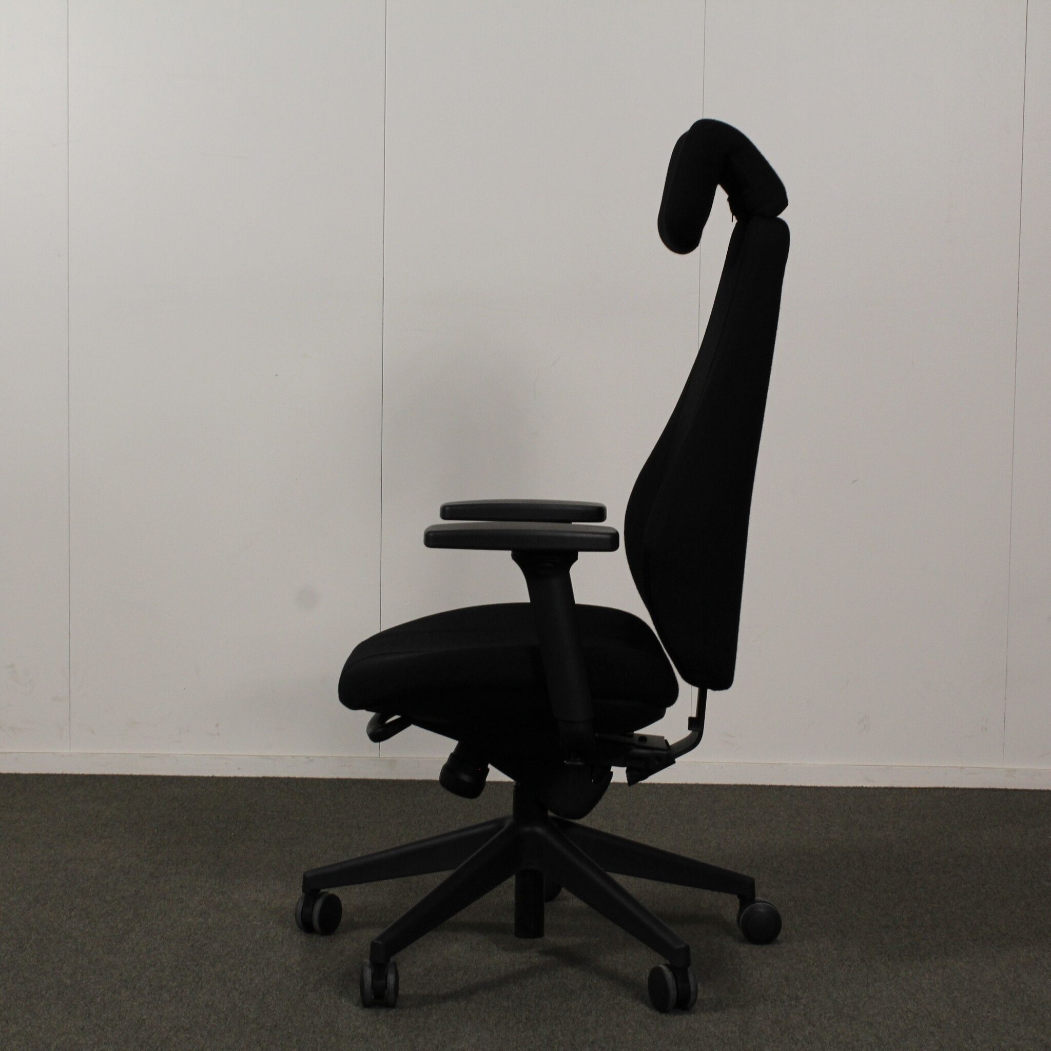 Step+ Työtuoli, musta, käsinojat, niskatuki