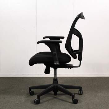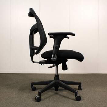 Korkeudensäätö kaasujousella, keinumekanismi, verkkoselkänoja ja ristiseläntuki, käsinojat.