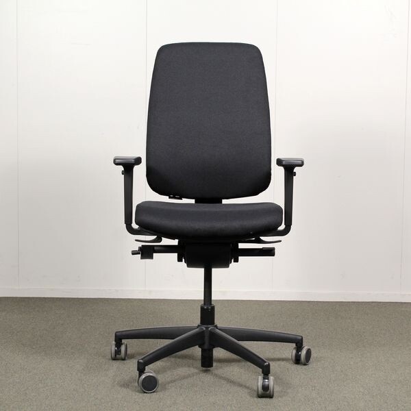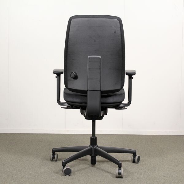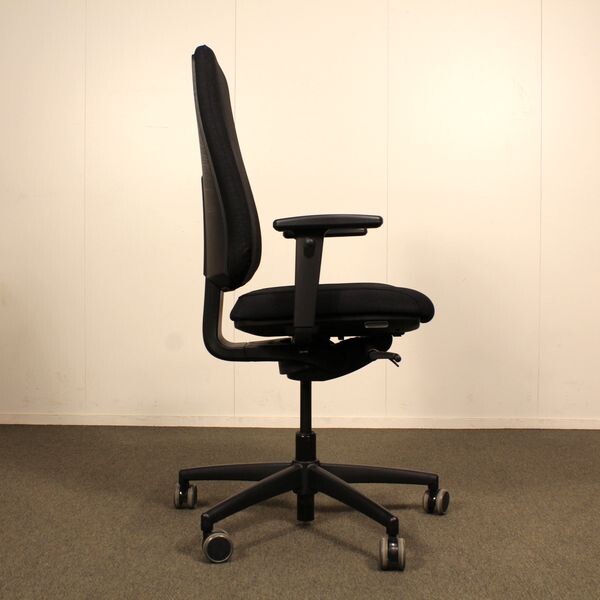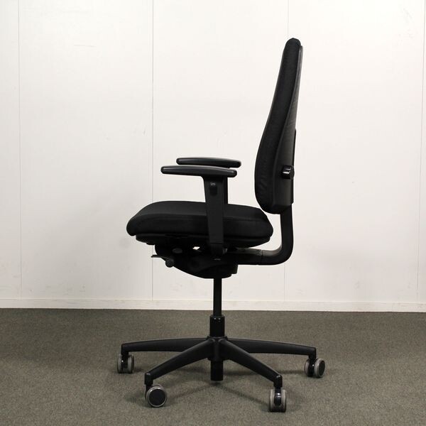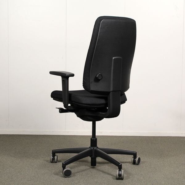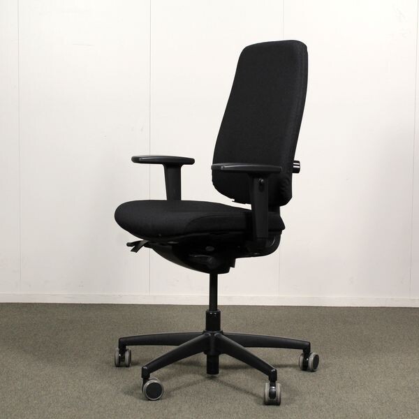 Uudelleenverhoiltu Isku Still työtuoli, musta, käsinojat