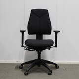 Uudelleenverhoiltu Kinnarps 6000 työtuoli, Matala selkänoja, musta, uudet käsinojat
