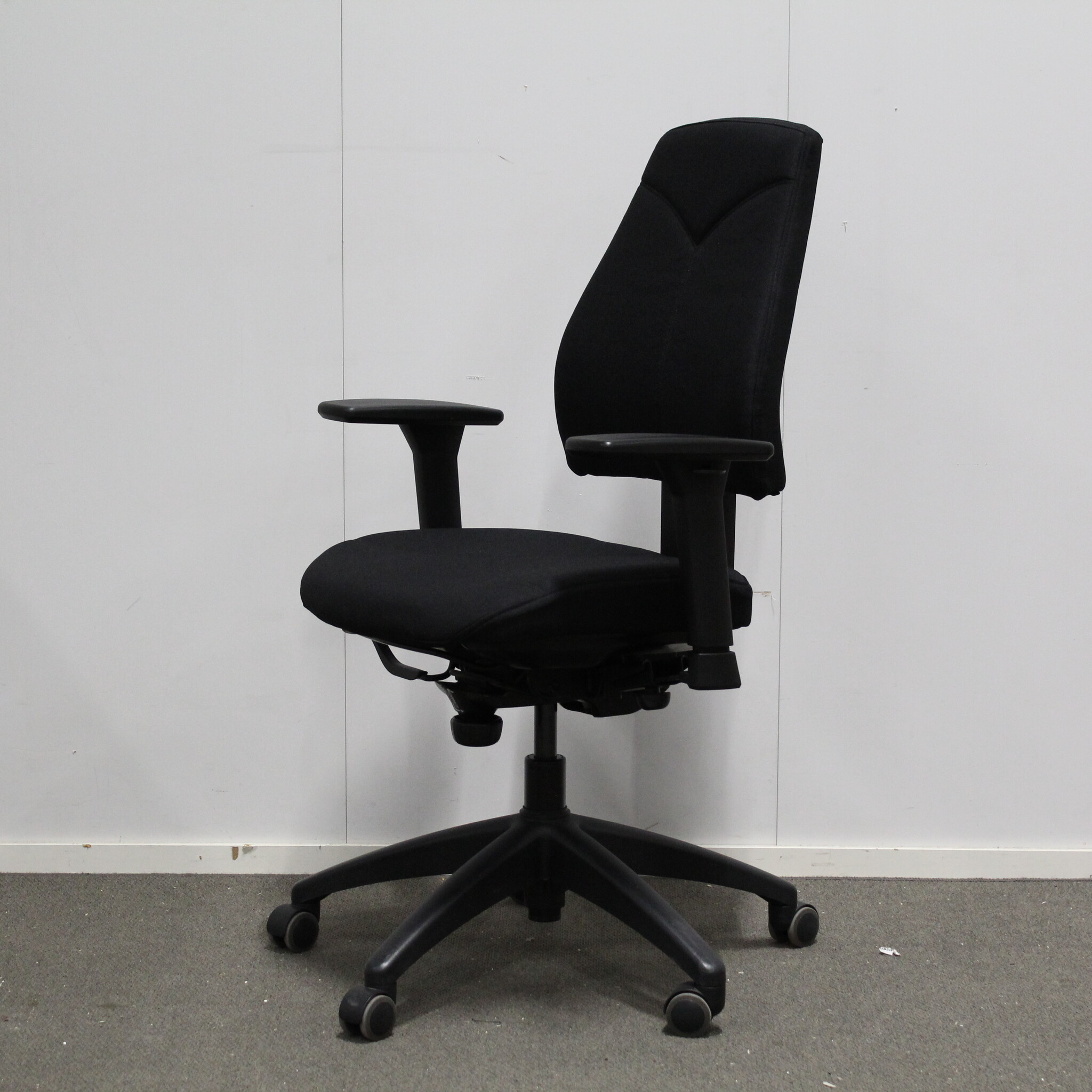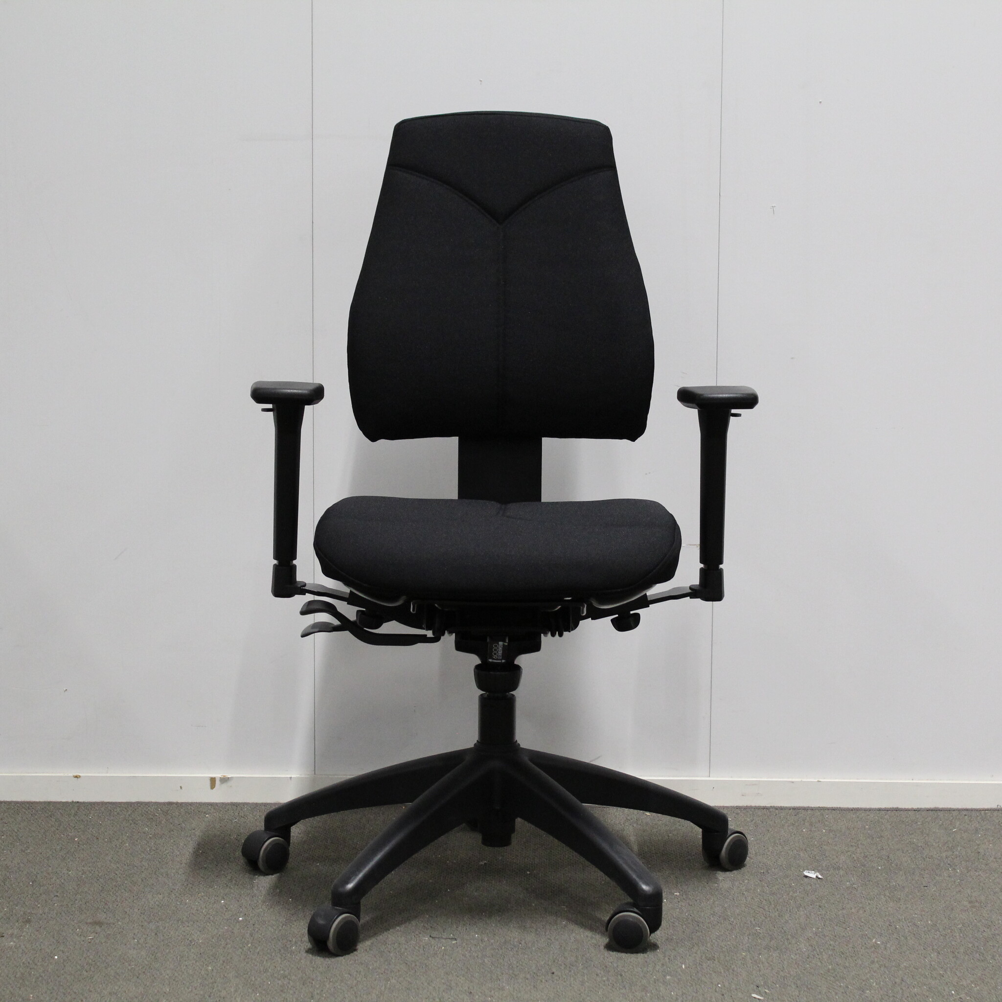 Käytetty Kinnarps 6000 työtuoli Free float mekanismilla takaa loistavan työpiste-ergonomian. Tämä tuoli on uudelleenverhoiltu mustalla Bondai kankaalla, 100 000mtd.