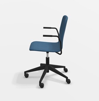 Runko pulverimaalattu teräs, vakioväri musta. Jalkaristikko musta polyamidi. Korkeudensäätö kaasujousella. Istuinosa ympäriverhoiltu, kangas Camira Era. Käsinojissa musta TPE pehmuste. Saatavilla tilauksesta laaja valikoima eri materiaalivaihtoehtoja ja -värejä. Pyydä tarjous!